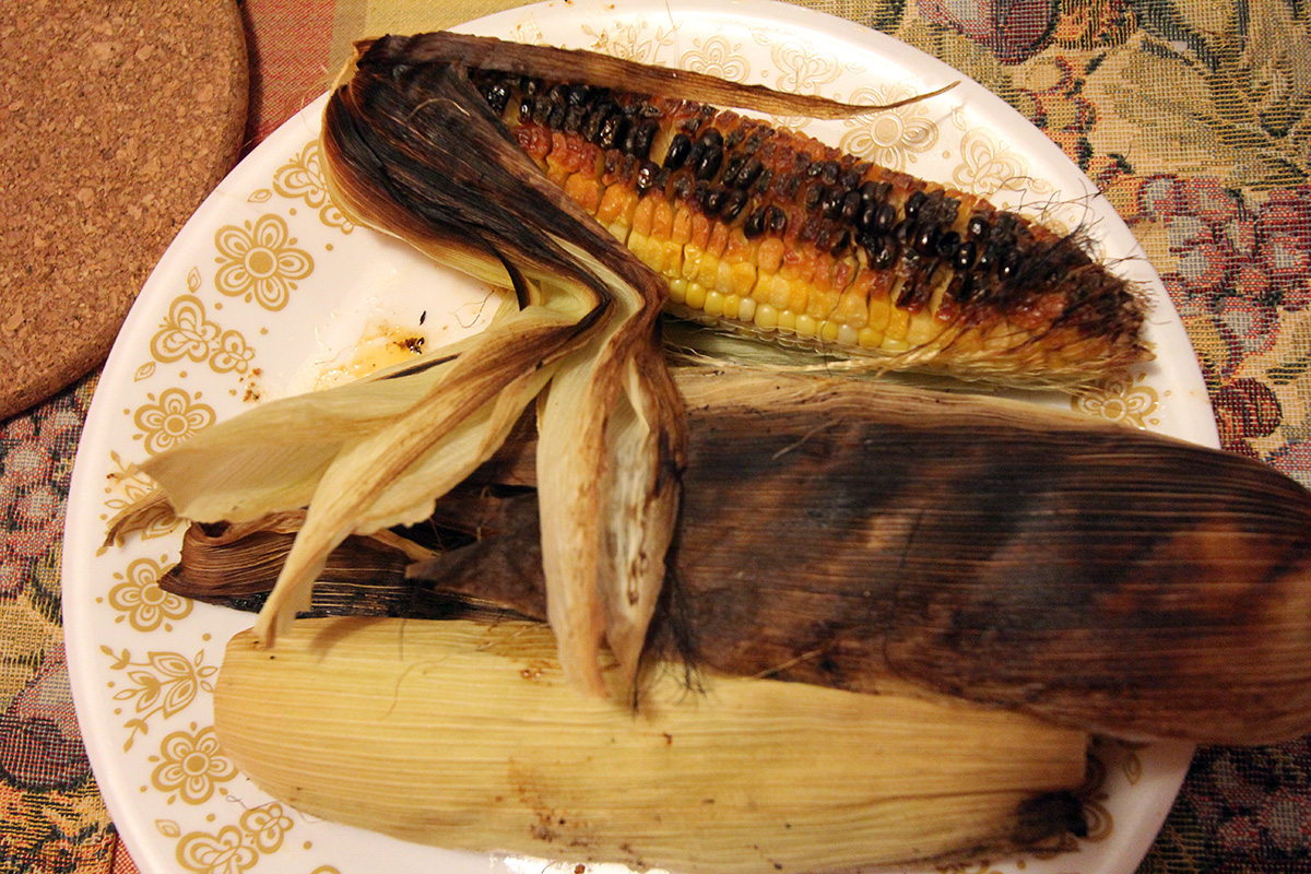we drank IBC root beers and cream sodas, as well as italian sparkling sodas. we were nearly finished eating when we finally remembered that the corns were still cooking outside. i also let them try some half sour pickles; sandy couldn't handle the taste at all, kelvin and LSH were okay with it but found it too sour.