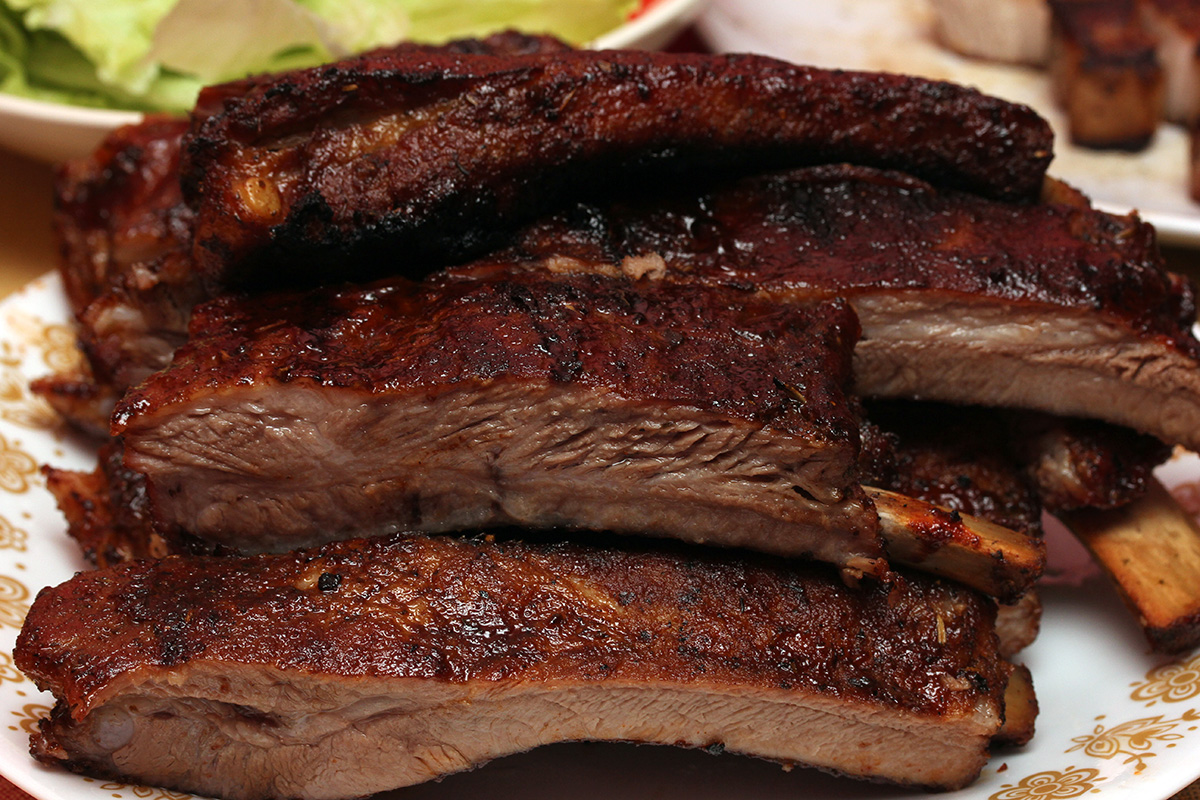 once the steaks were done, we transitioned to the 8 burgers. as these were only 80% lean, there was a lot of fat which created massive flare-ups. we moved the burgers around the grill like a game to prevent them from scorching. after the burgers came the italian sausages and pork bellies. they were cooked as is, without any seasoning. the pork bellies had a lot of drippings which created flare-ups, so like the burgers, they had to be repeatedly moved around the grill to prevent them from being charred. next came the ribs: stubb's sticky sweet barbecue sauce was applied on both sides before putting on the grill. there was still some residual flare-ups from the liquid fat deposited on the charcoals, but not too bad. after both sides were grilled, we took them off the barbecue. finally it was time for the corn. kelvin grilled the corn as-is without barbecue sauce, i didn't object as he paid for them. the heat was already dying down by then (45 minutes had gone by), so we left the corn to slow cook in the low heat with the cover on.