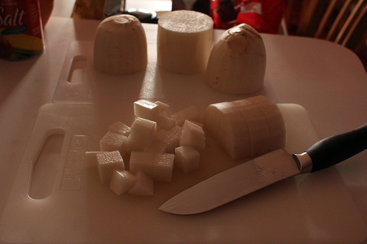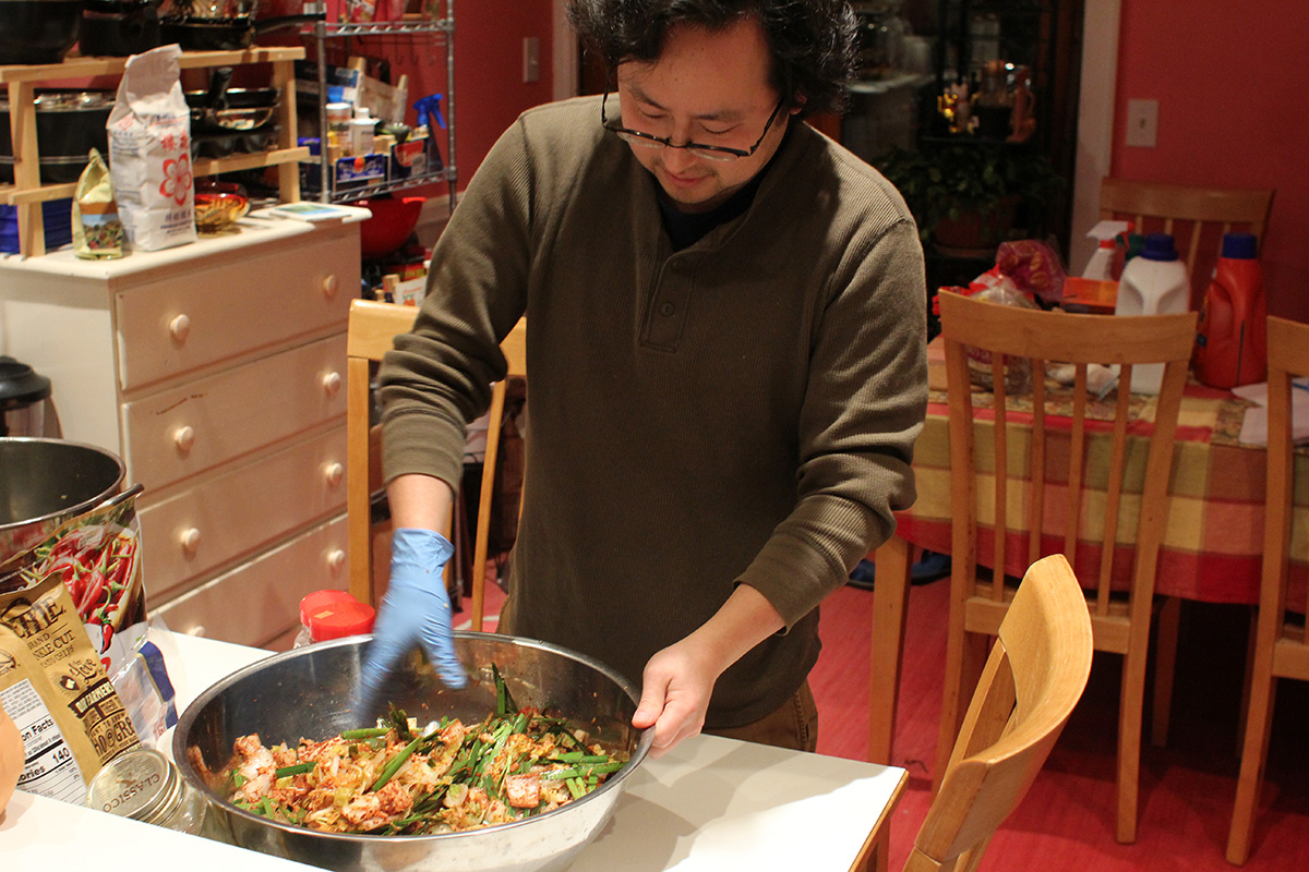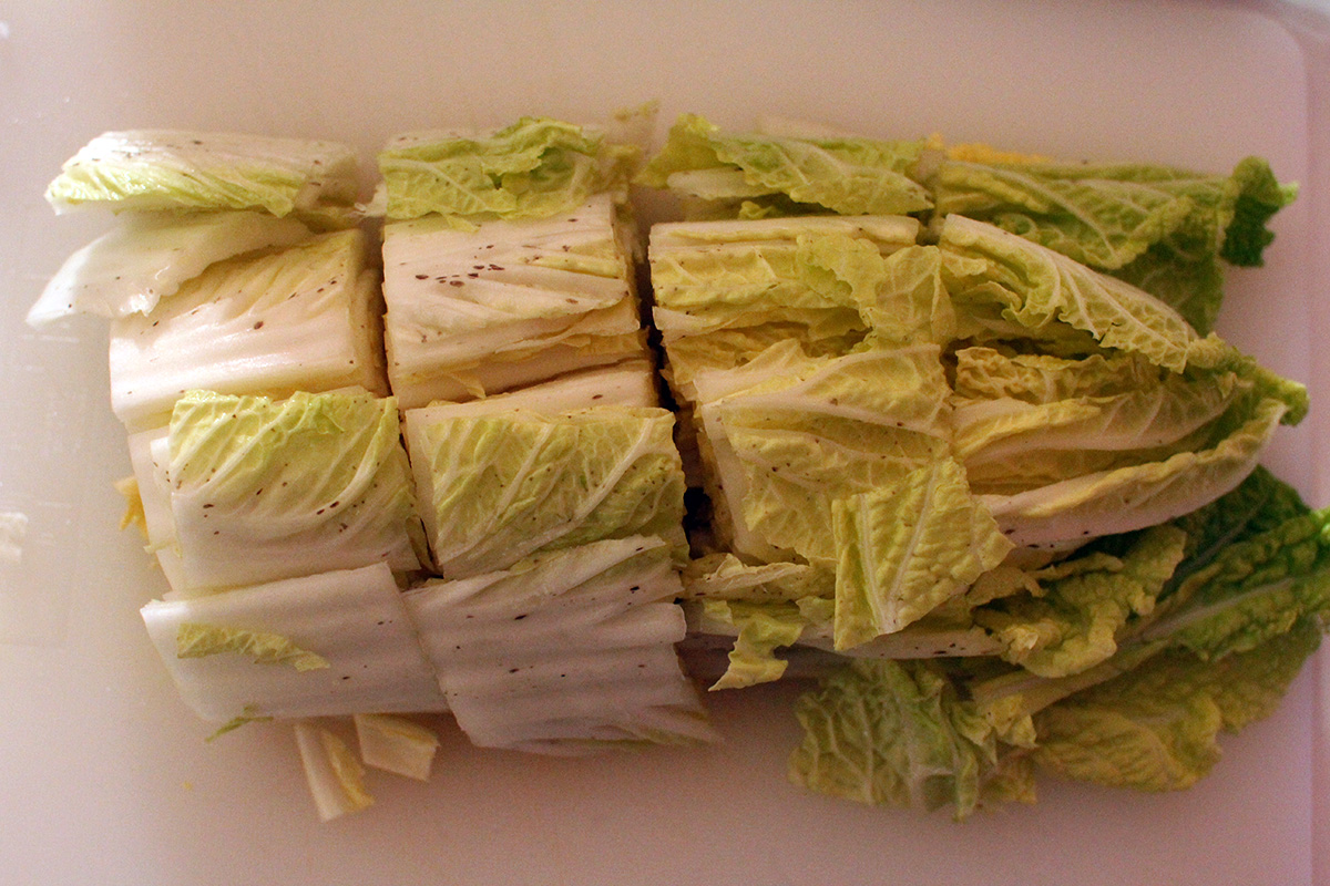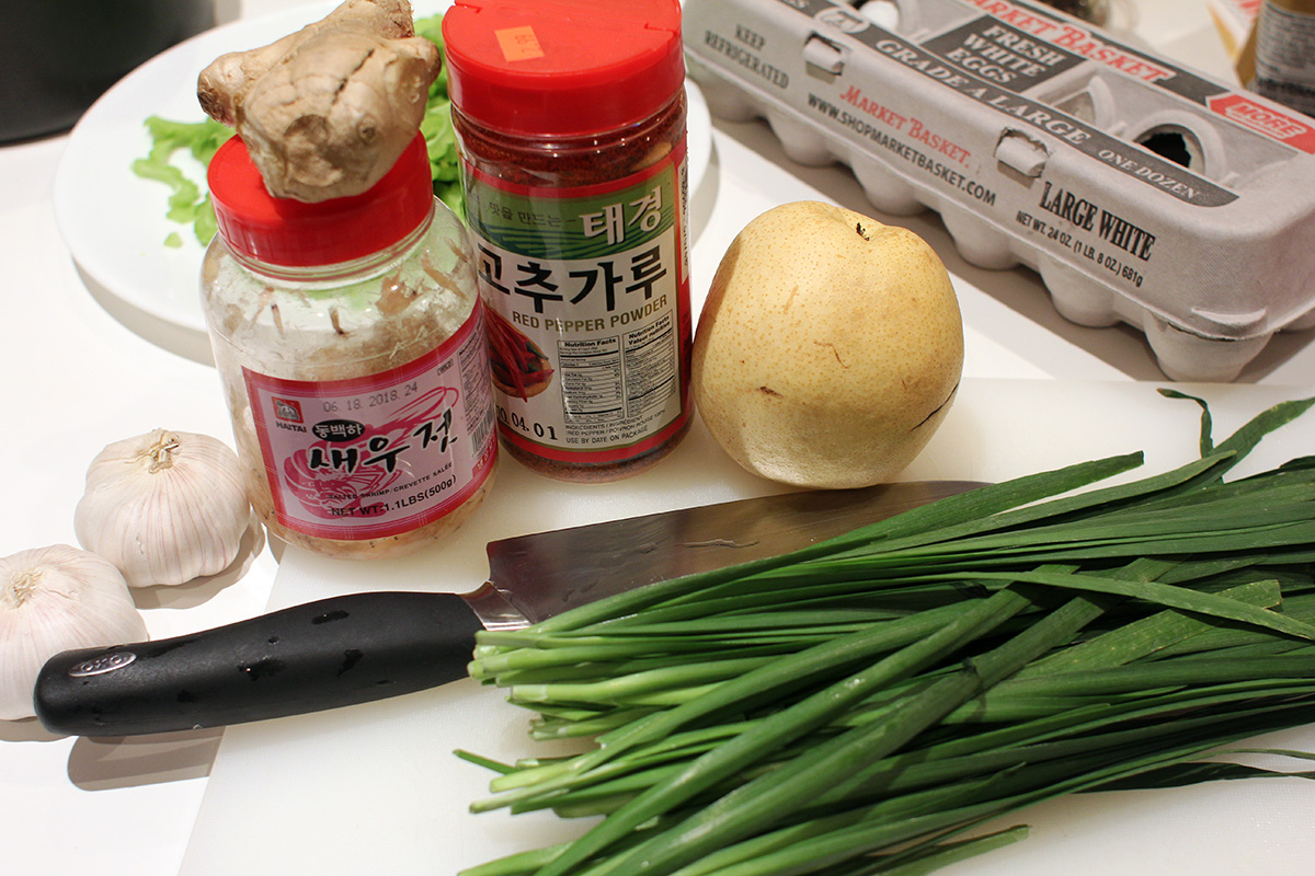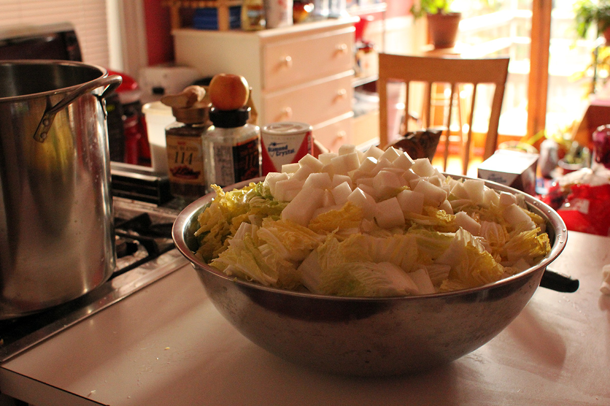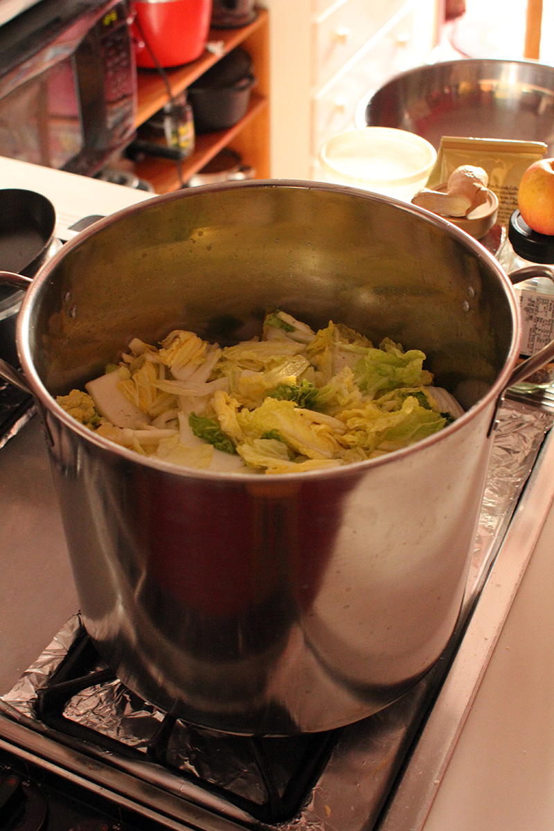 7.59 lbs. napa cabbage 3.02 lbs. daikon radish 5.75 tbsp fine salt 2 tbsp salted shrimp paste 14 tbsp red pepper powder |