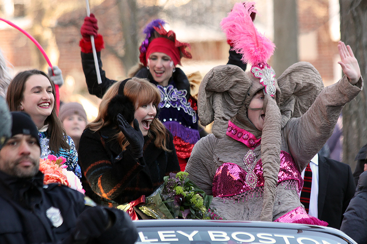 i've known about the hasty pudding woman of the year parade since 2009 but i've only seen a few: mila kunis (2018) * marion cotillard (2013) * anne hathaway (2010) * renee zellweger (2009). 2011 julianne moore came to town to receive her award but there was no parade that year. there's also been years were i could've gone but didn't because i wasn't so hot about the winner (2012 claire danes, 2015 amy poehler comes to mind). kelvin seems to be obsessed with emma stone and asked if she'd ever received the award (surprisingly no, but maybe it's just a matter of time, or perhaps she declined the offer).