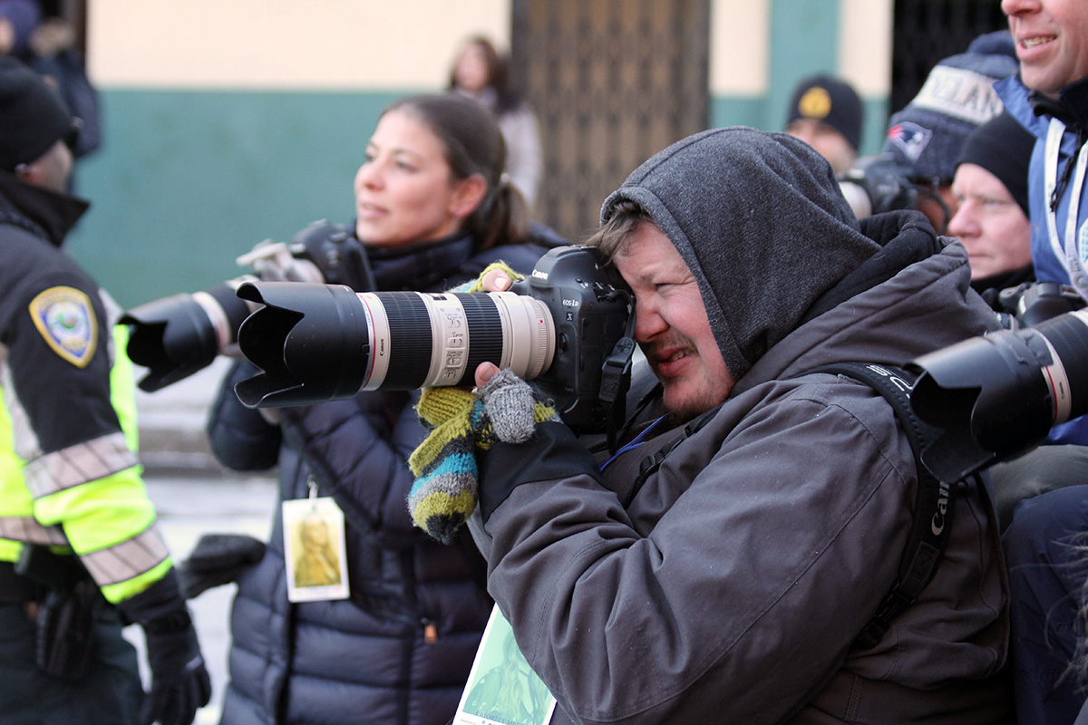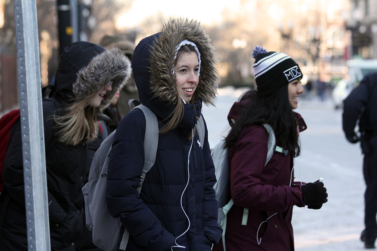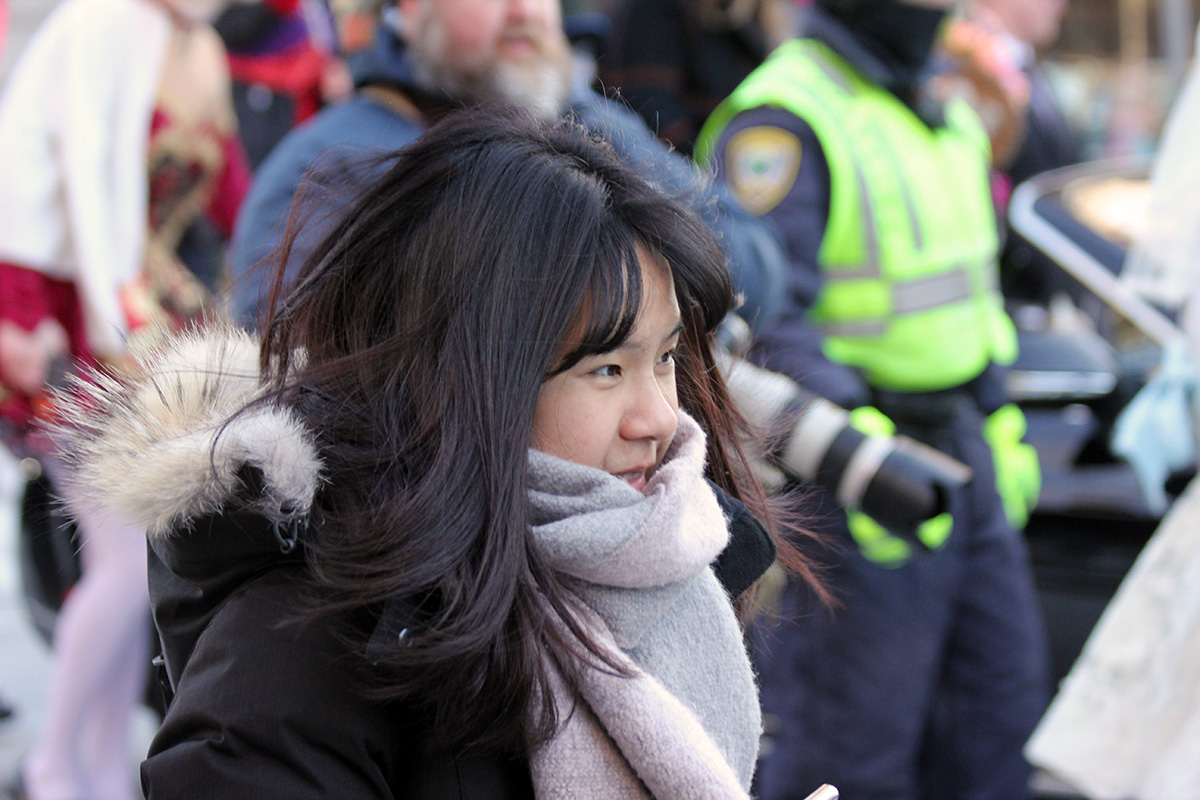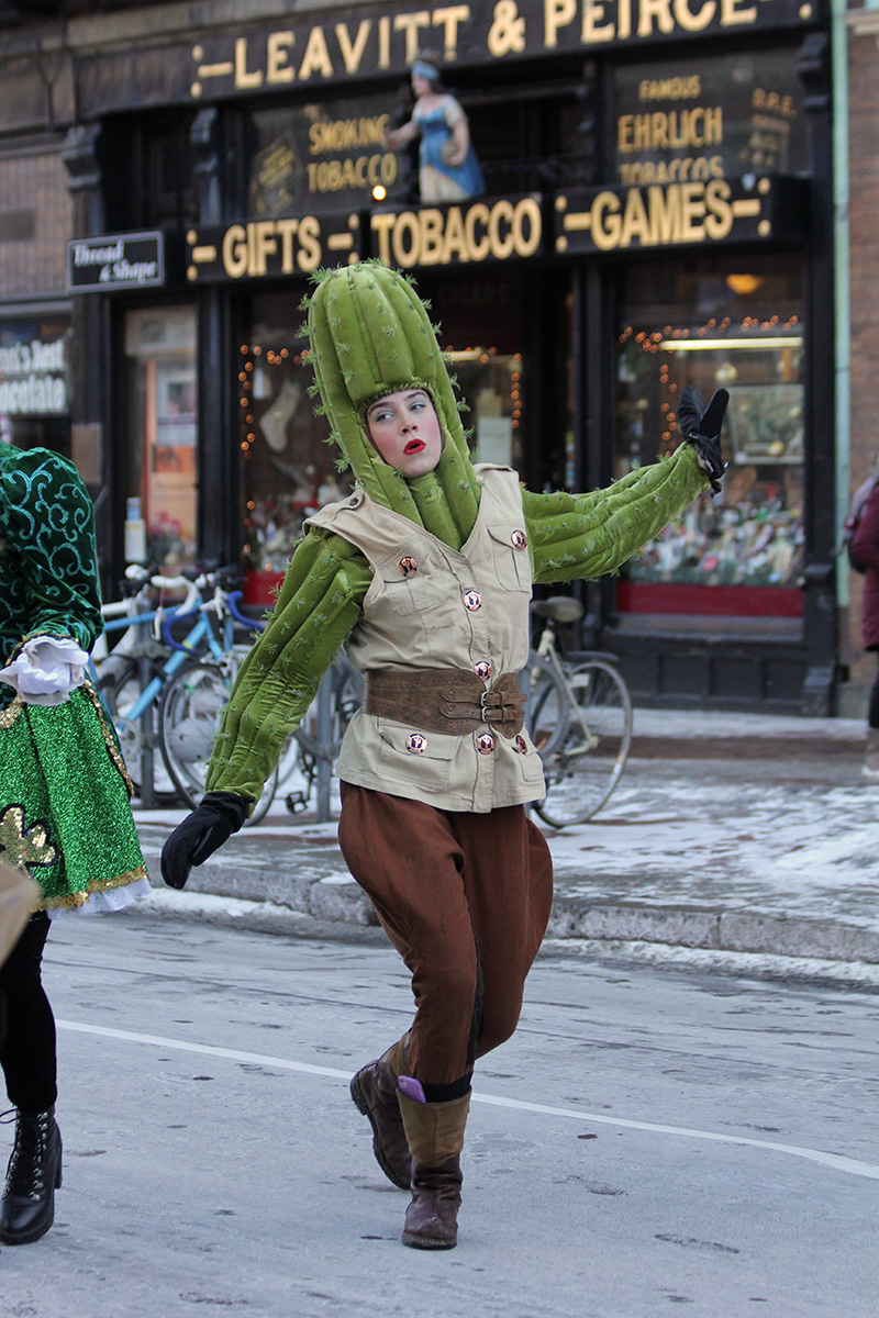 once again, sandy wasn't going to work today, since she was waiting to see the hasty pudding parade later in the afternoon. we finally left by 2:15pm. temperature was in the teens today so i busted out my heavy duty columbia winter jacket for the first time this season. i also wore my flannel-lined pants with another layer of wool long underwear underneath. however i didn't take into consideration that my green jacket combined with the green pants would make me look like i was dressed more for the army than the parade.