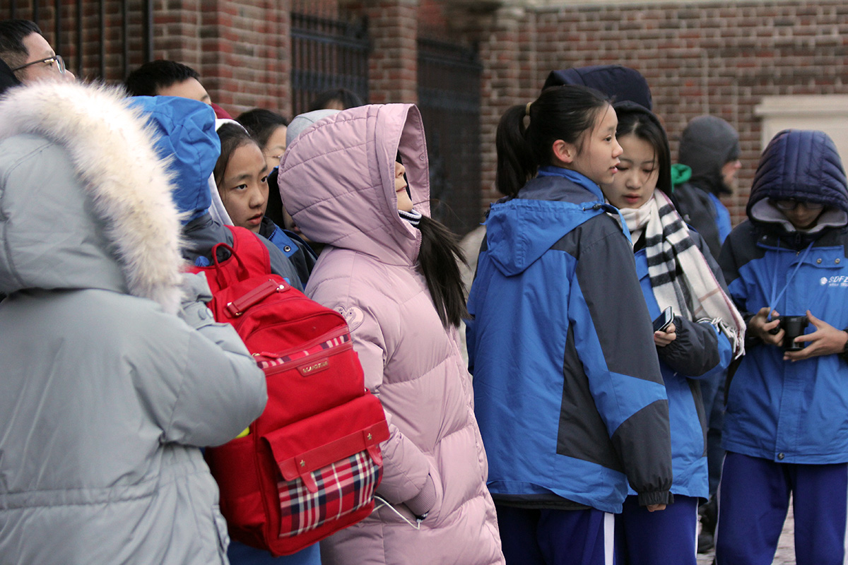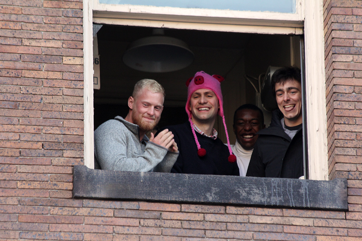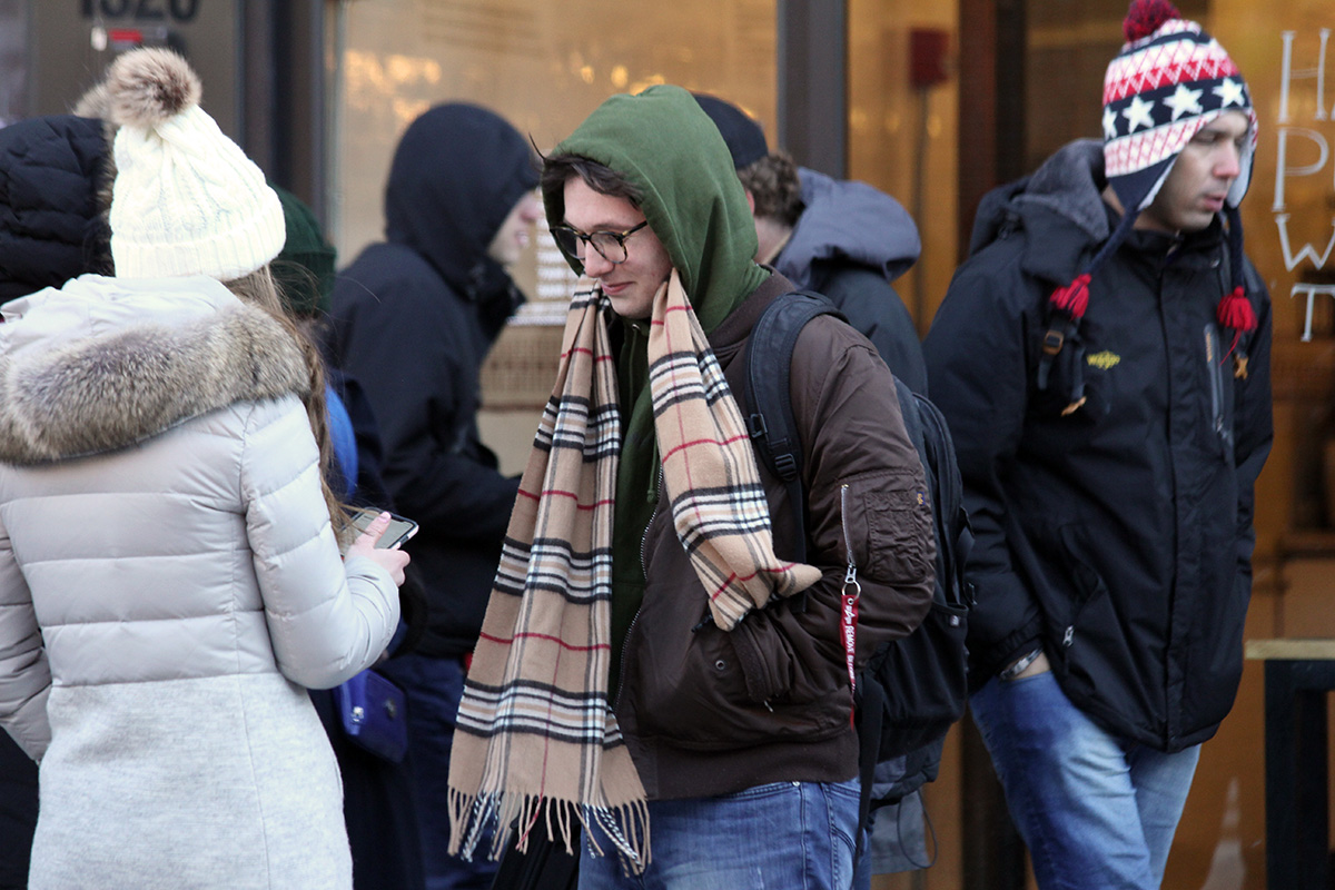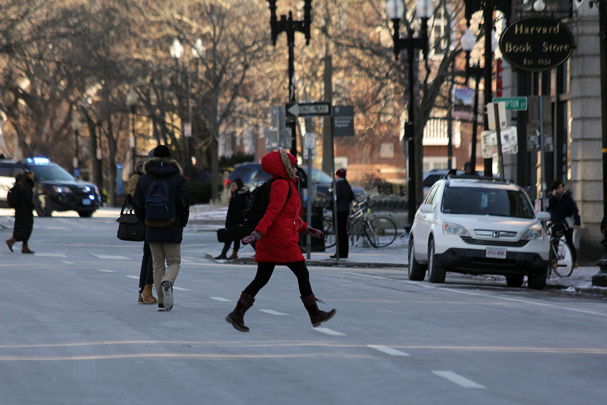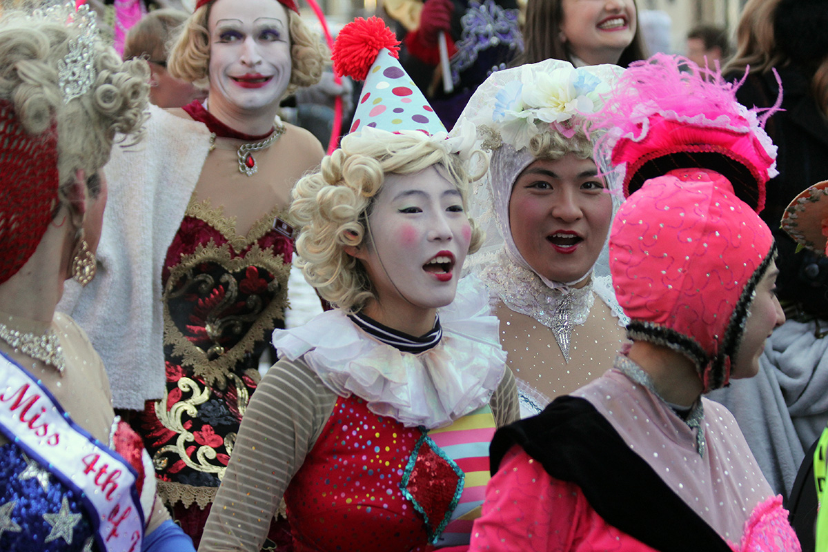once again, sandy wasn't going to work today, since she was waiting to see the hasty pudding parade later in the afternoon. we finally left by 2:15pm. temperature was in the teens today so i busted out my heavy duty columbia winter jacket for the first time this season. i also wore my flannel-lined pants with another layer of wool long underwear underneath. however i didn't take into consideration that my green jacket combined with the green pants would make me look like i was dressed more for the army than the parade.