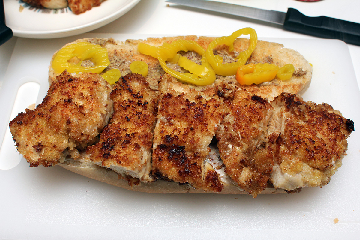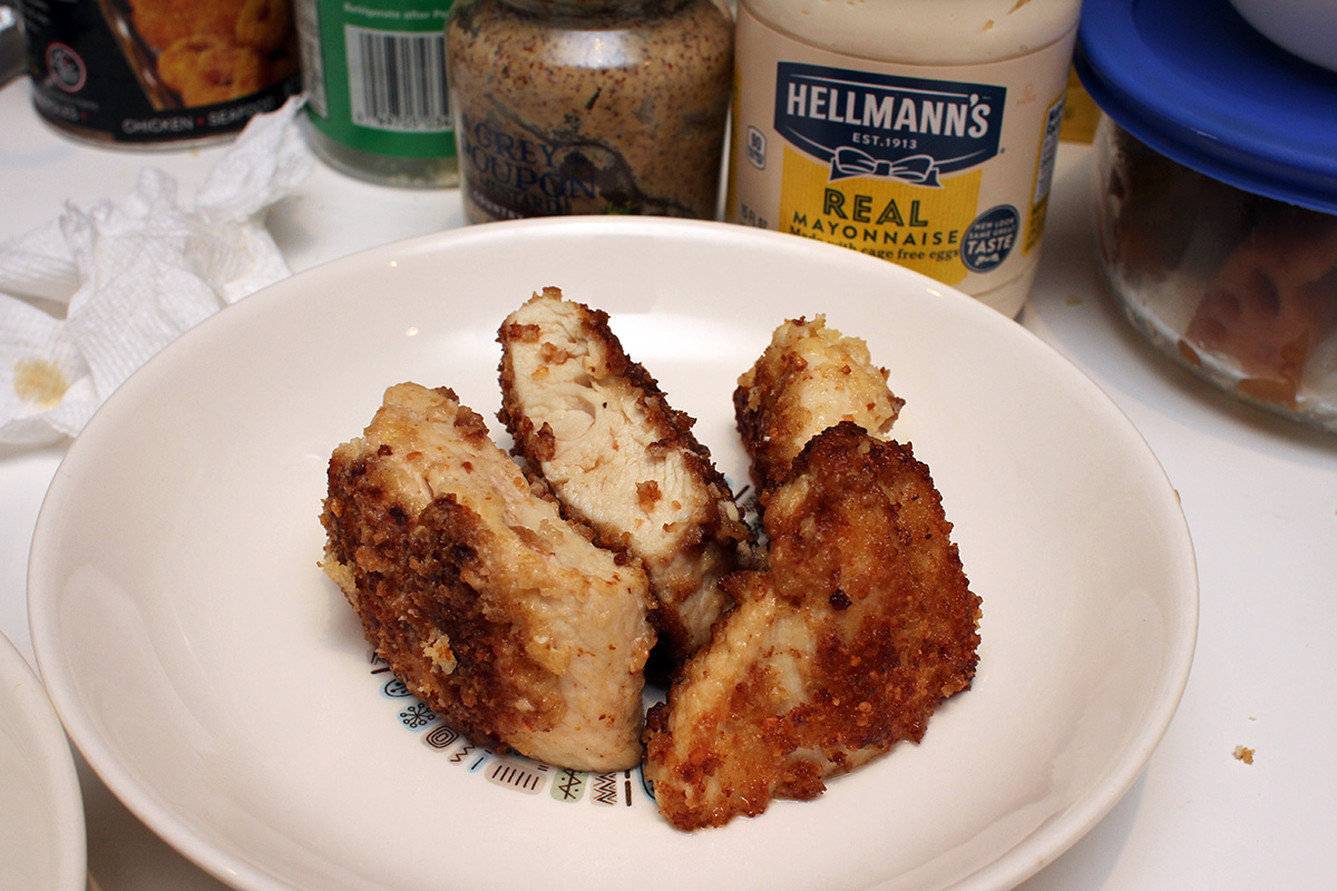 as for me, i defrosted some chicken breasts earlier and butter pan-fried two pieces of panko-breaded chicken to make sandwiches. the "cutlets" were too thick and i ended up having to split them into smaller pieces in order to properly cook the centers. it tasted great though, i ate one cutlet while saving the other one for tomorrow night.
