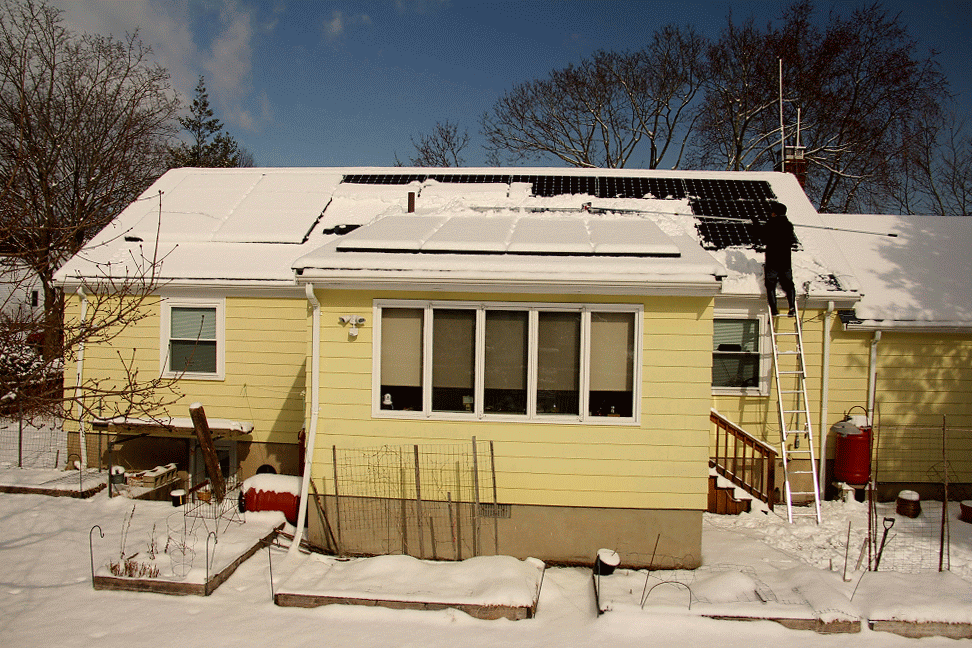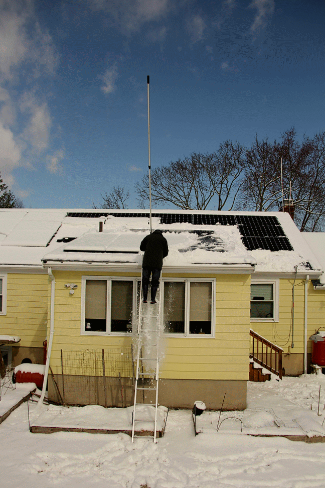 it took my father about 20 minutes to sweep the powdery snow off of the solar panels with the roof rake. he drove me back home by 10:30am.