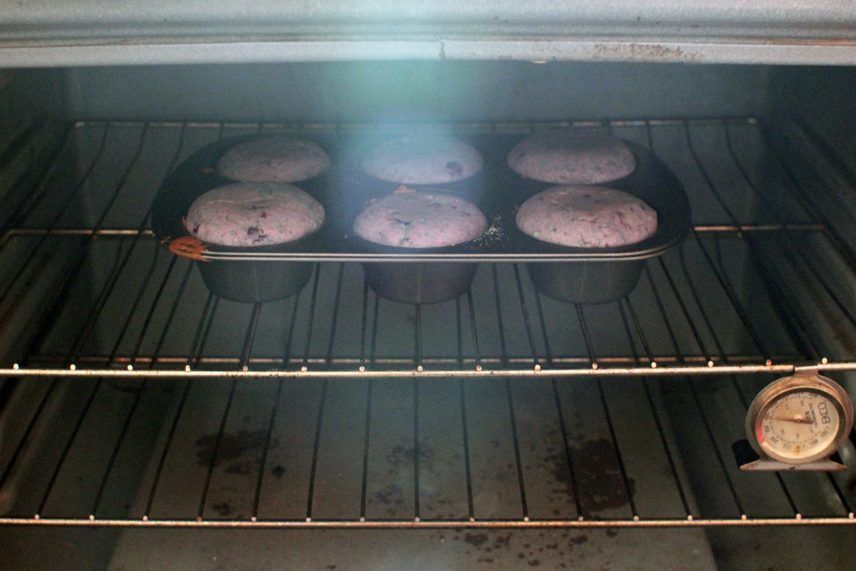 into the oven went the muffins. cleaning up afterwards, i suddenly noticed something was off: did i put in the baking powder? turns out i completely forgot. i went from putting in 3x baking powder to none at all. as the muffins had only been in the oven for a few minutes, i figured i could still salvage it. so i took them out, scooped out the batter, and reconstituted everything with a tablespoon of baking powder. by that point the batter was already the consistency of half-melted ice cream, more liquid than solid. i put everything back into the oven. when i reduced the temperature and checked the muffins after 10 minutes, i was relieved to see there was rising.