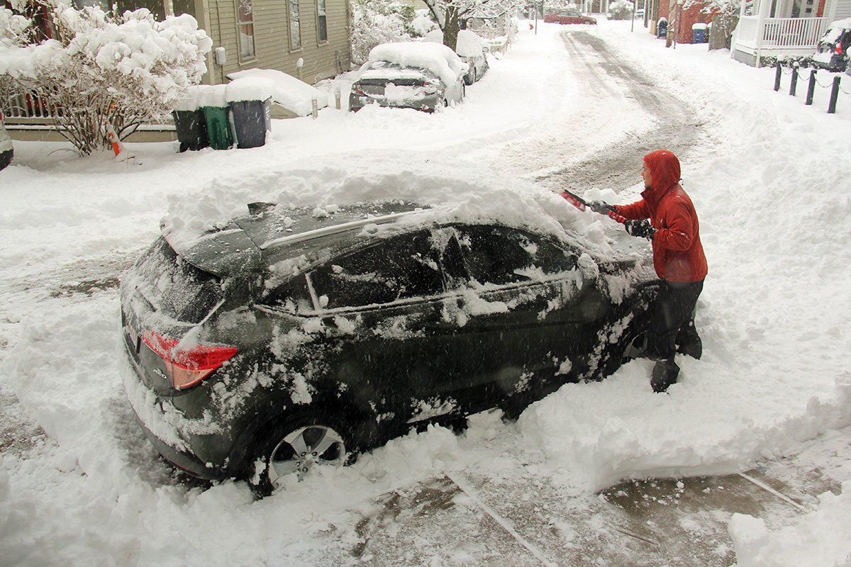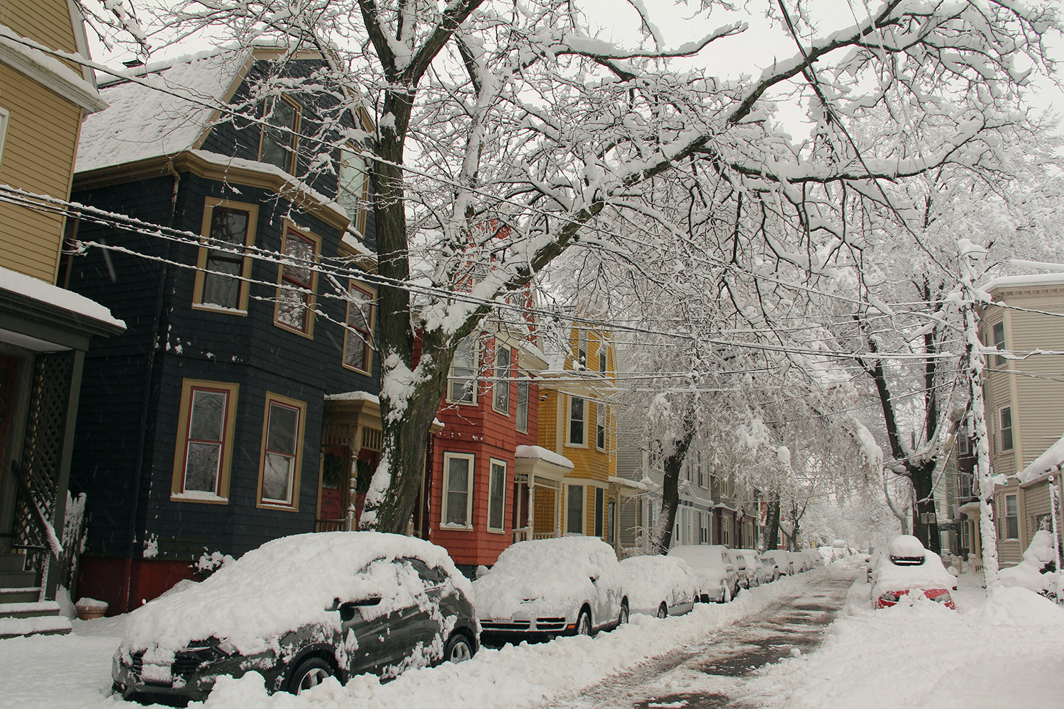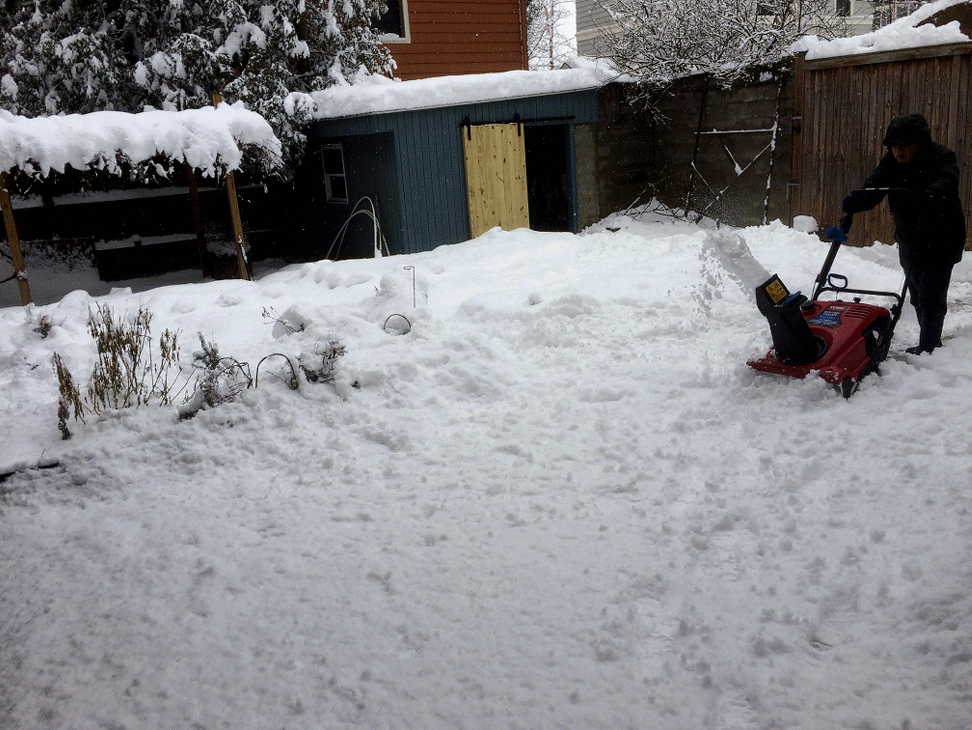 i began cleaning my own sidewalk and backyard around 7:30am and was finished 30 minutes later. if i had to guess, cambridge got around 8-10 inches of wet snow. it took a little more effort to clear but the good part was the snow was like wet clay and was easy to layer into a pile. i stopped occasionally to take a breath, cursing my upstairs neighbors the whole time for them not coming out to help (though granted it was still early and snow was still falling but more of a flurry by that point). about 8:30am i saw my mother in the living room webcam and gave her a call. she told me she gave my 2nd aunt the day off because there was too much snow and that my father was coming directly to pick me up. i poured some hot tea into my travel mug and ate a twinkie.