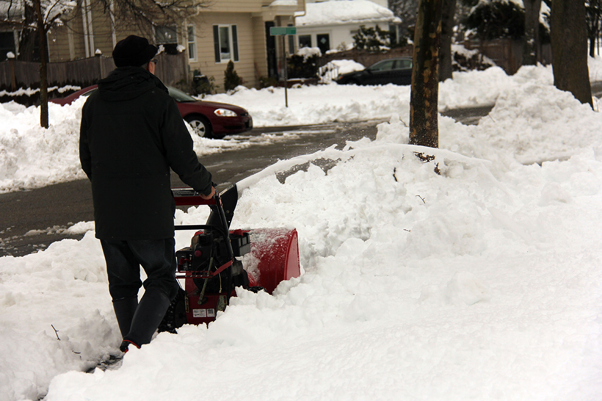 by that point foot traffic had already trampled the sidewalk snow so it was all compacted. my father worked the single stage snowblower while i manned the shovel. due to the compaction, i ended up having to clear a pathway on the sidewalk before my father could clean it up with the machine. i worked up enough sweat that i ended up taking off my jacket because i was getting too hot, a sign of a good snow shoveling workout. my sister only showed up after my father and i had converged at the parking lot.