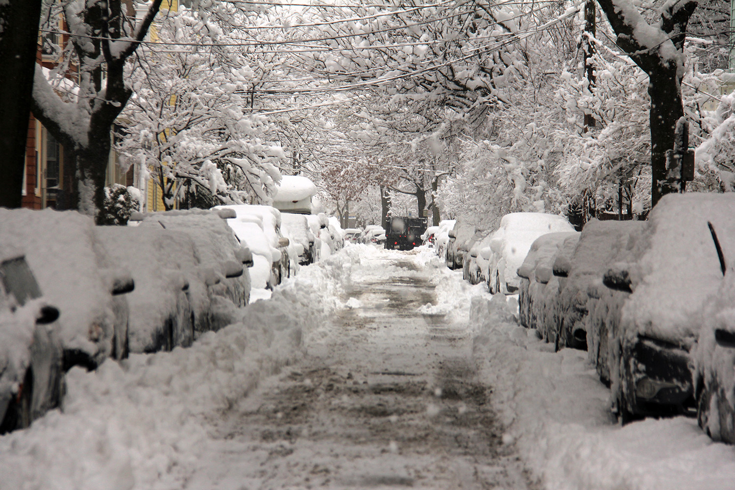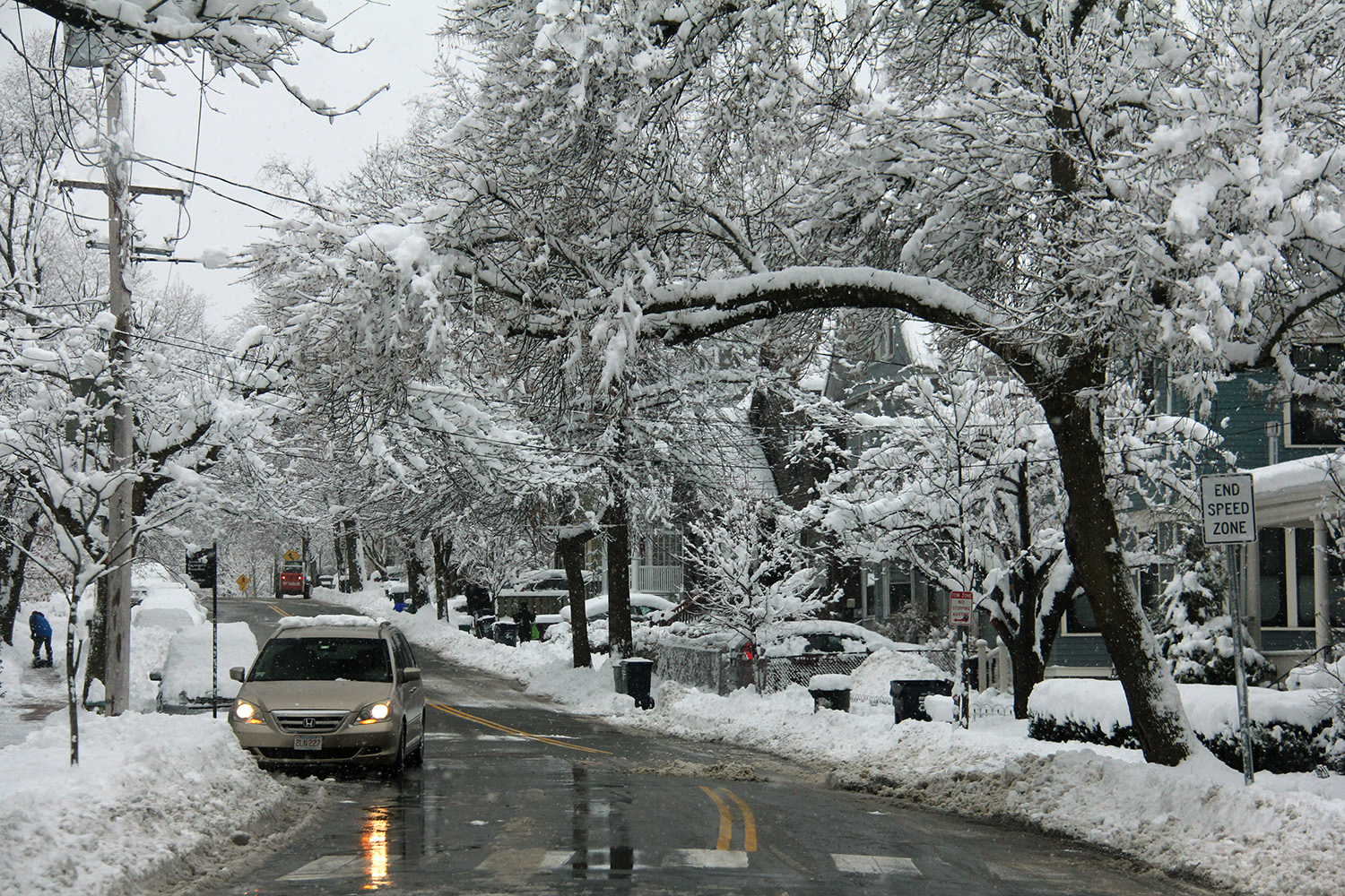 my father finally arrived by 8:40am as we made our way to the cafe. a lot of people were digging out, while pedestrians walked in the streets since many sidewalks weren't cleared out yet. the trees were covered in snow but the temperature was above freezing so everything was melting and landing with heavy clumps onto the car as we drove by. despite police putting out notice to get people to clean their cars, we still saw many vehicles driving with snow on the roof.
