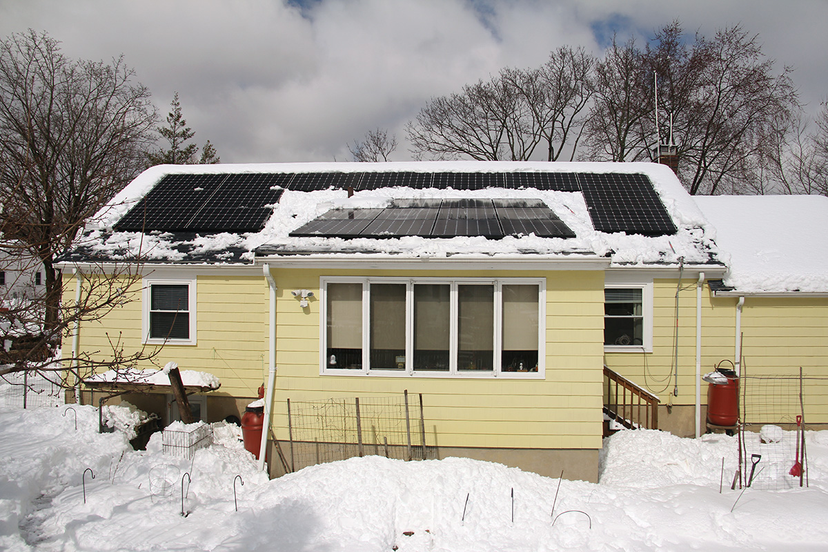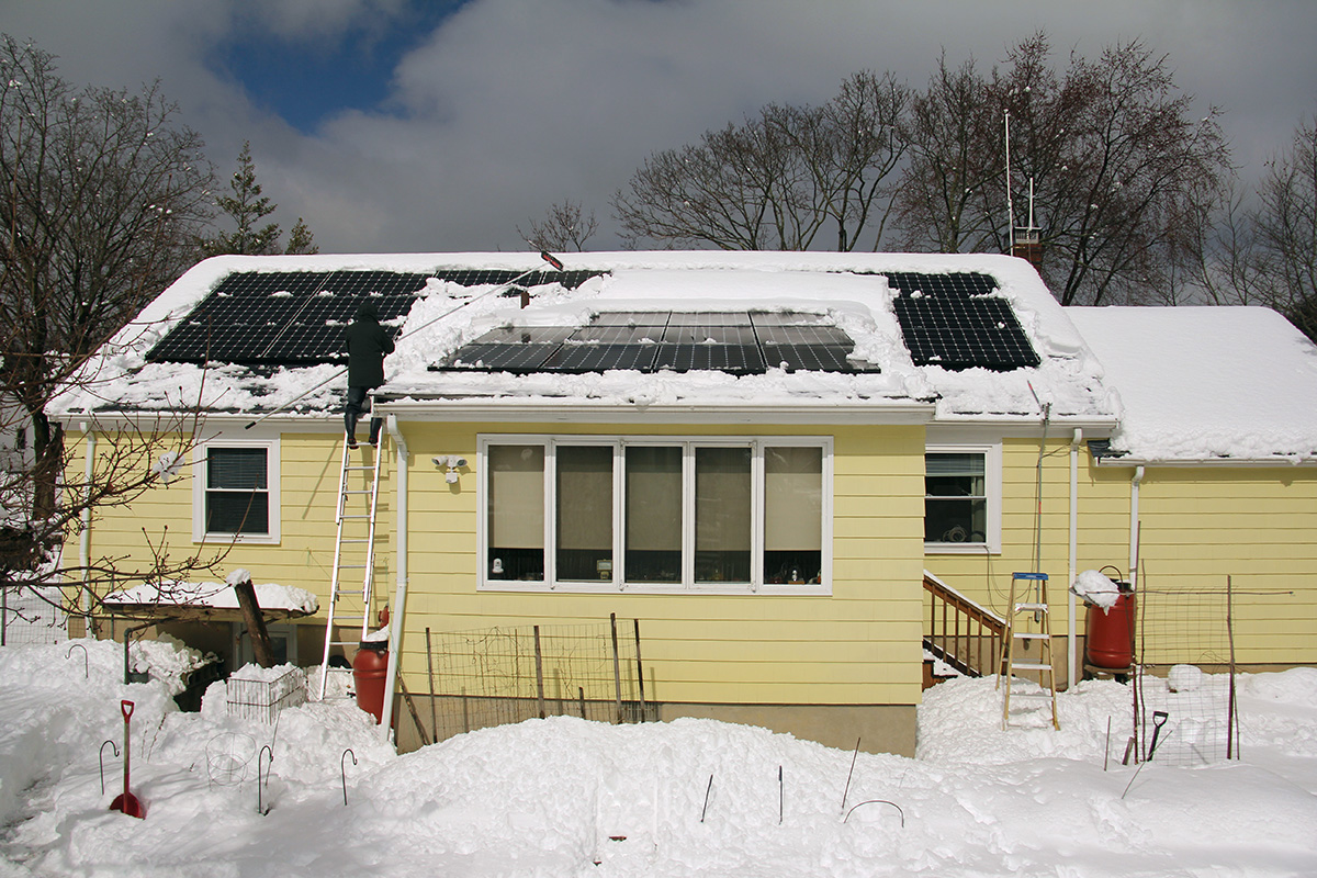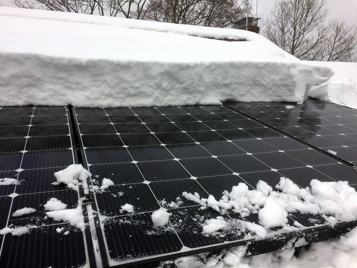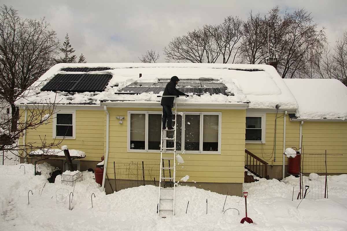 the last thing we had to do was clear the snow off of the solar panels. this was especially important since 1) the snow was too thick to melt quickly on its own, and 2) a hard freeze is expected overnight and whatever snow is left behind will turn to ice and stay that way for the rest of the week.