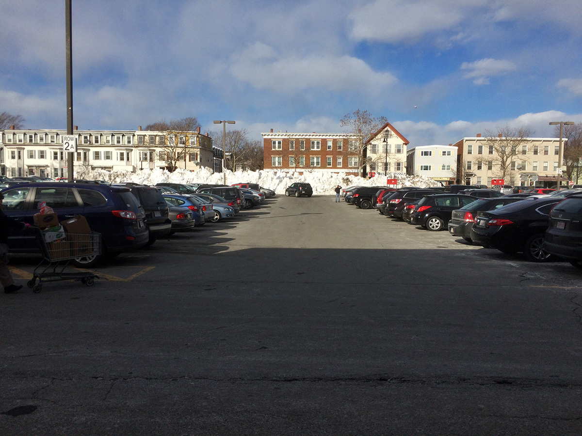 i had to finally get some groceries today so in the afternoon i biked down to market basket. the local landscape is now dotted with frozen snow piles but the