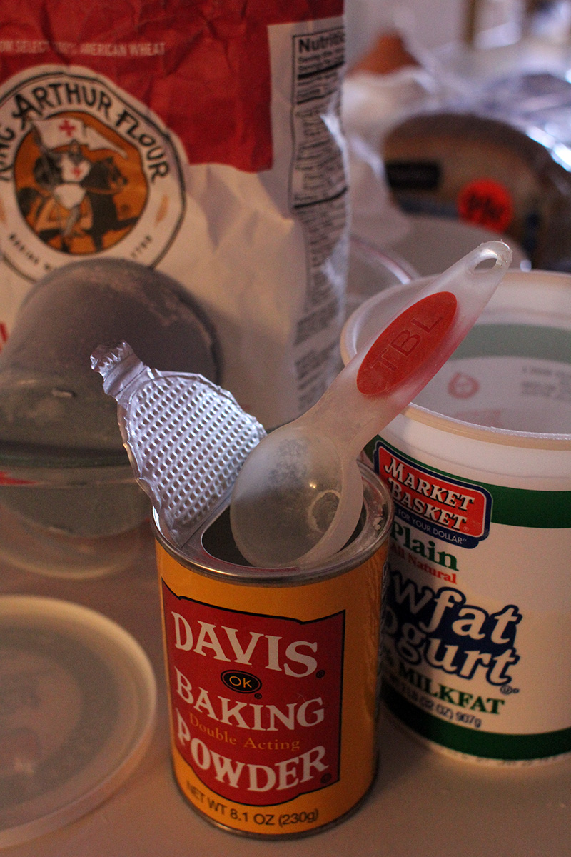 2 cups flour* 1/2 tsp salt 1 tbsp baking powder 1/2 cup half and half 2 cups frozen blueberries cooking spray |