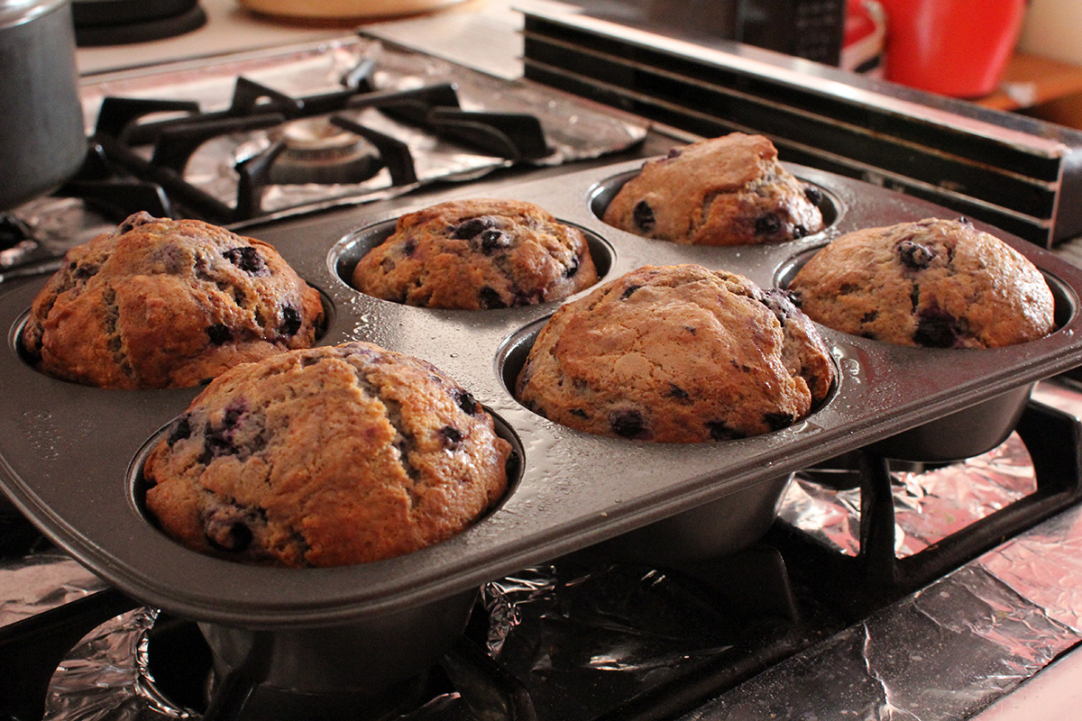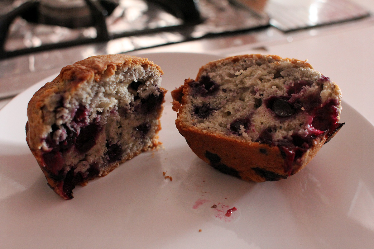 the muffins turned out okay. contrary to what i saw when i opened the oven, they had a good rise with decent muffin tops. at the time i didn't know i'd accidentally skimped on the corn starch; if i didn't find out, i would've thought these were the best muffins i've made yet.