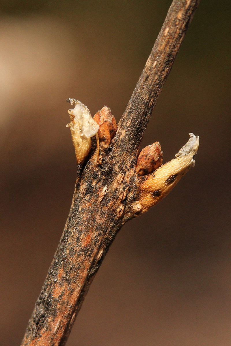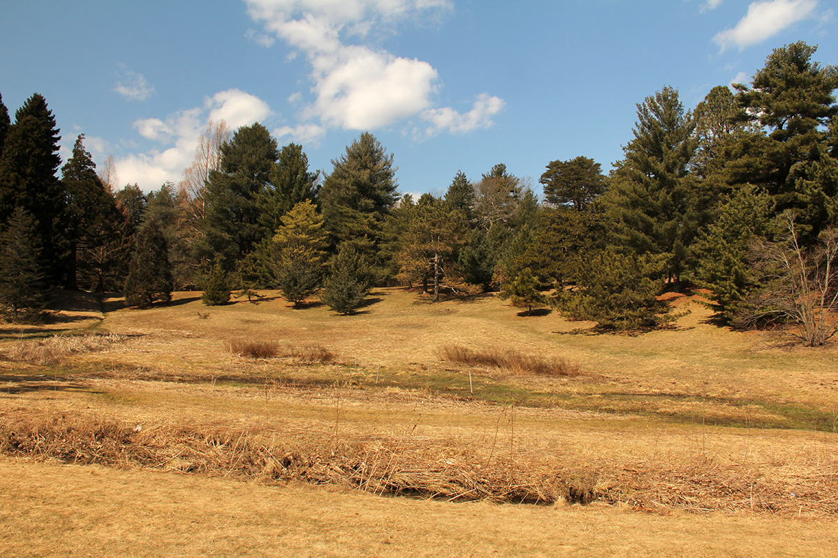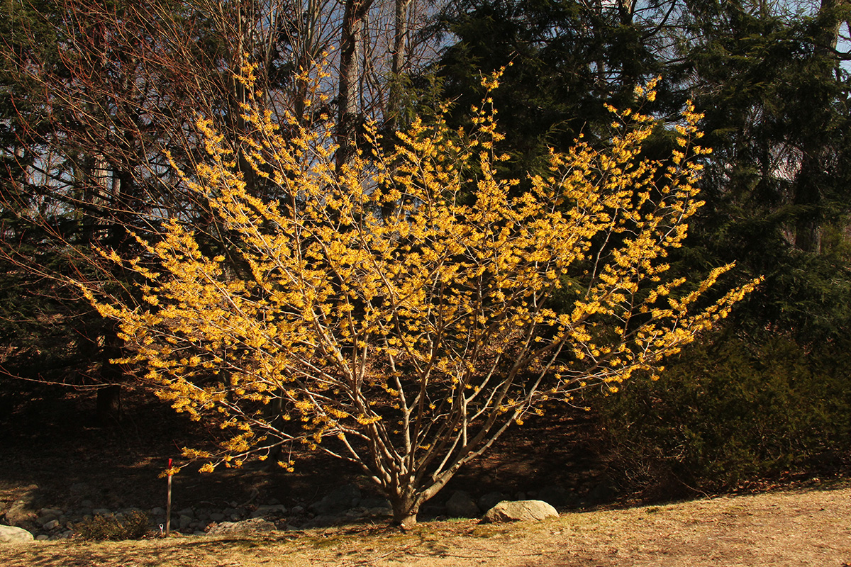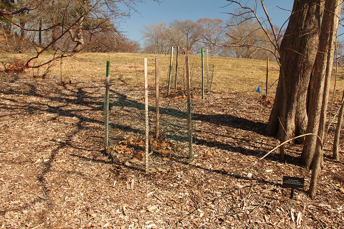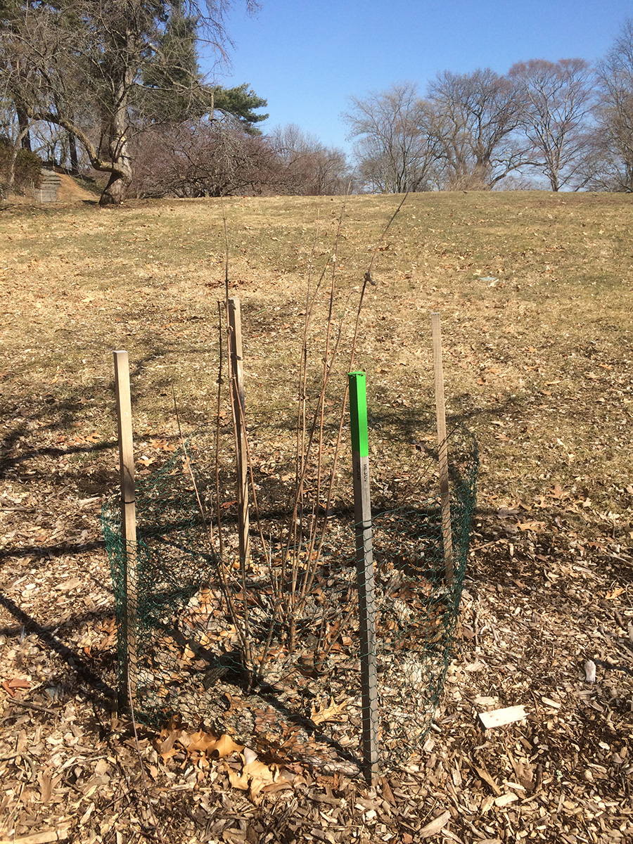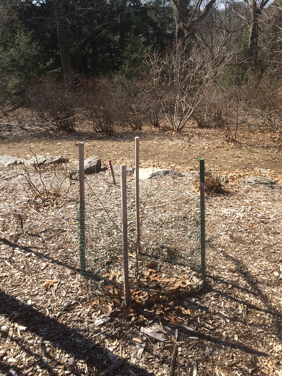up on bussey hill was the whole reason why i traveled all the way down here for: to see the wintersweets. i saw them last may, but i didn't see any flowers. i was hoping to come back in the late winter - when they typically blossom - but never had the chance. maybe i'd get lucky and see some flowers today even though its fairly late in the flowering season. it took me a while to find them, until i realized they put up protection screens around the plants. i could only locate 2 new (2016) wintersweets last time, but this time found the 3rd older (1999) plant. i was surprised to find no activity, not even any signs of flowers. at most there were some early buds that looked to be leaves. i'll need to come back in a few more weeks and see what develops.
