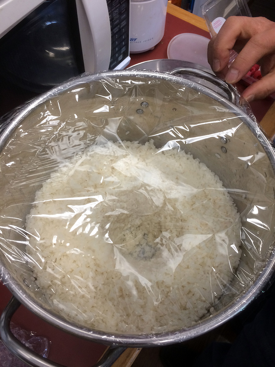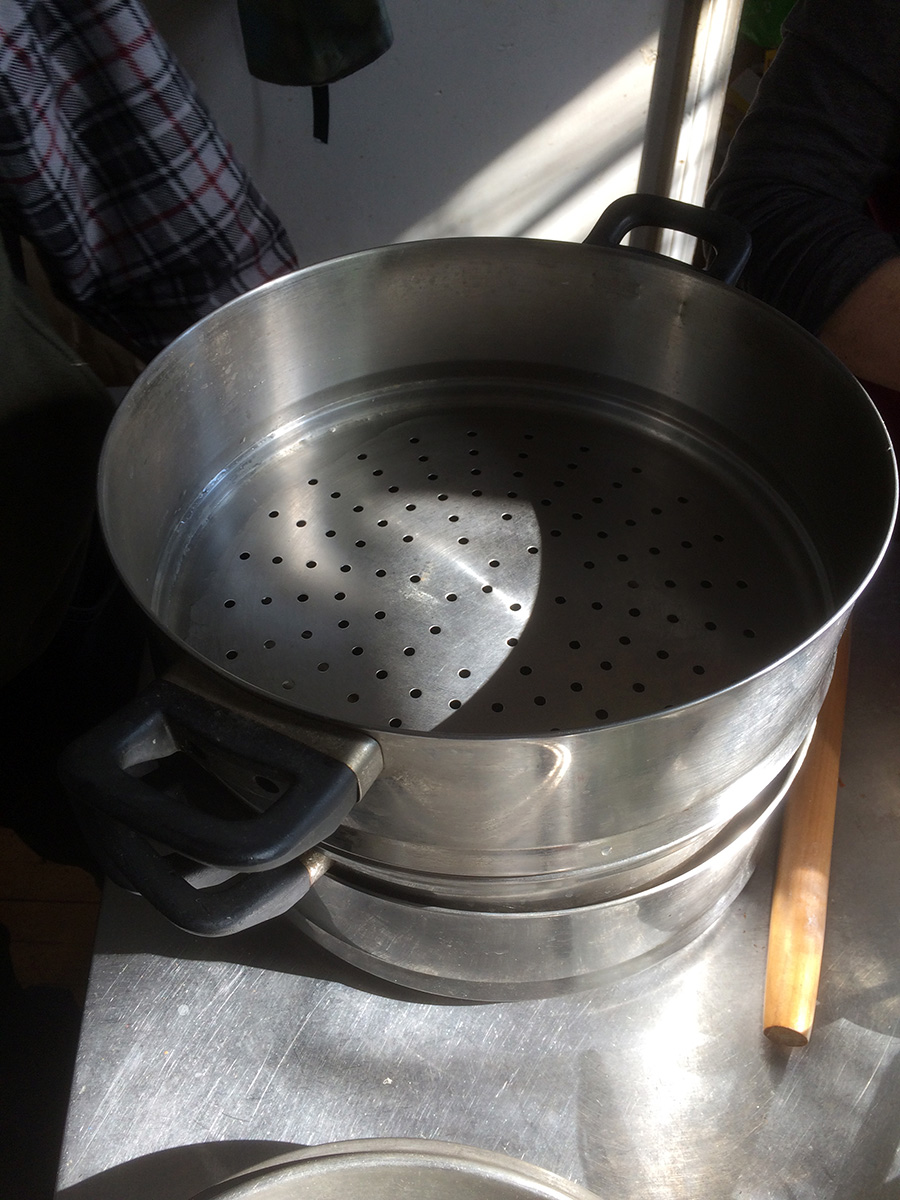 i stopped at the cafe, where my father was finished making some fermented glutinous rice AKA jiuniang. it's actually more involved than i first realized. i ferment a whole 5 lbs. bag of glutinous rice requires using a set of industrial steamers to cook the rice first before sprinkling in the special jiuniang yeast to produce the fermentation. if i made this at home, i could only do it in small batches.