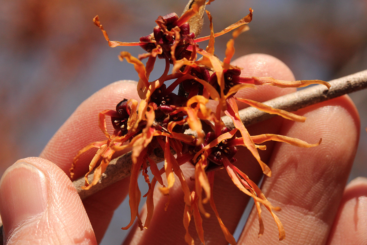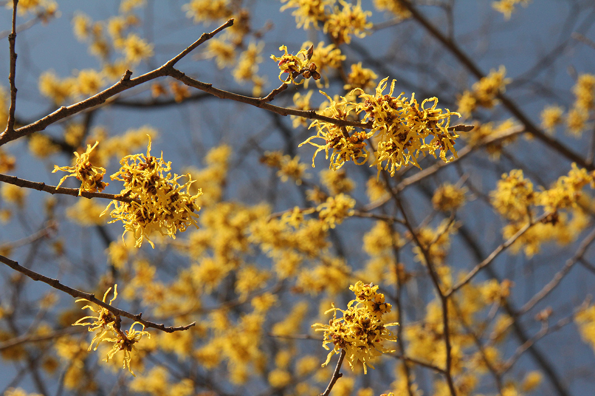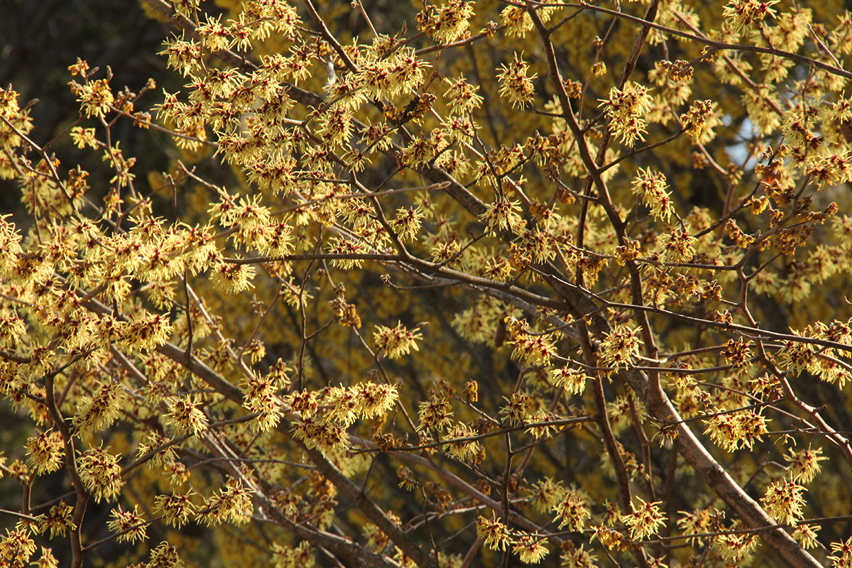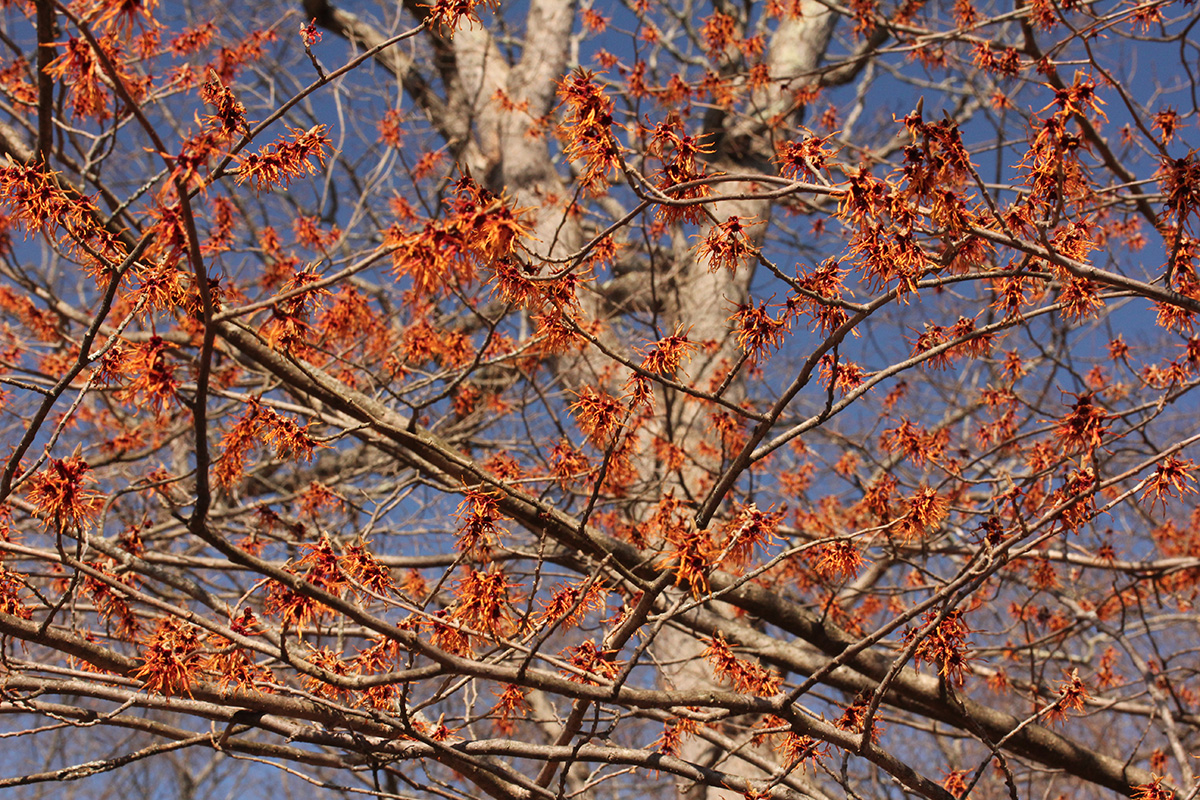 another early season bloomers are the witch hazels. i've often heard that witch hazels are fragrant, but all the ones i've ever come across were unscented. however it was the smell that attracted me to red witch hazels, which i've never seen before. these were magic fire witch hazels, and unlike their yellow cousins, these definitely had a fragrance.