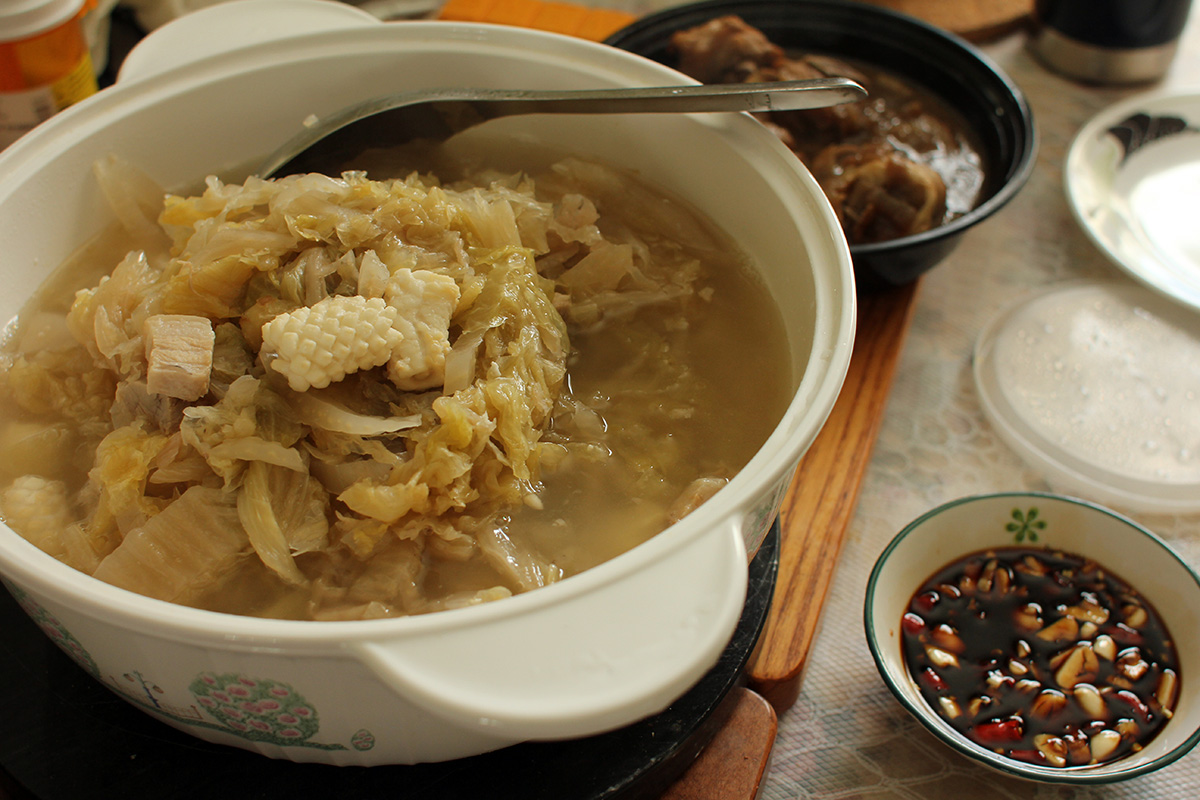 i didn't have a chance to properly test out comcast xfinity internet before i left yesterday. i asked my mother about it, she didn't notice any slowdowns in her netflix streaming or web browsing, so those were good signs everything was working. for lunch we had a sauerkraut stew with squid and pork belly.