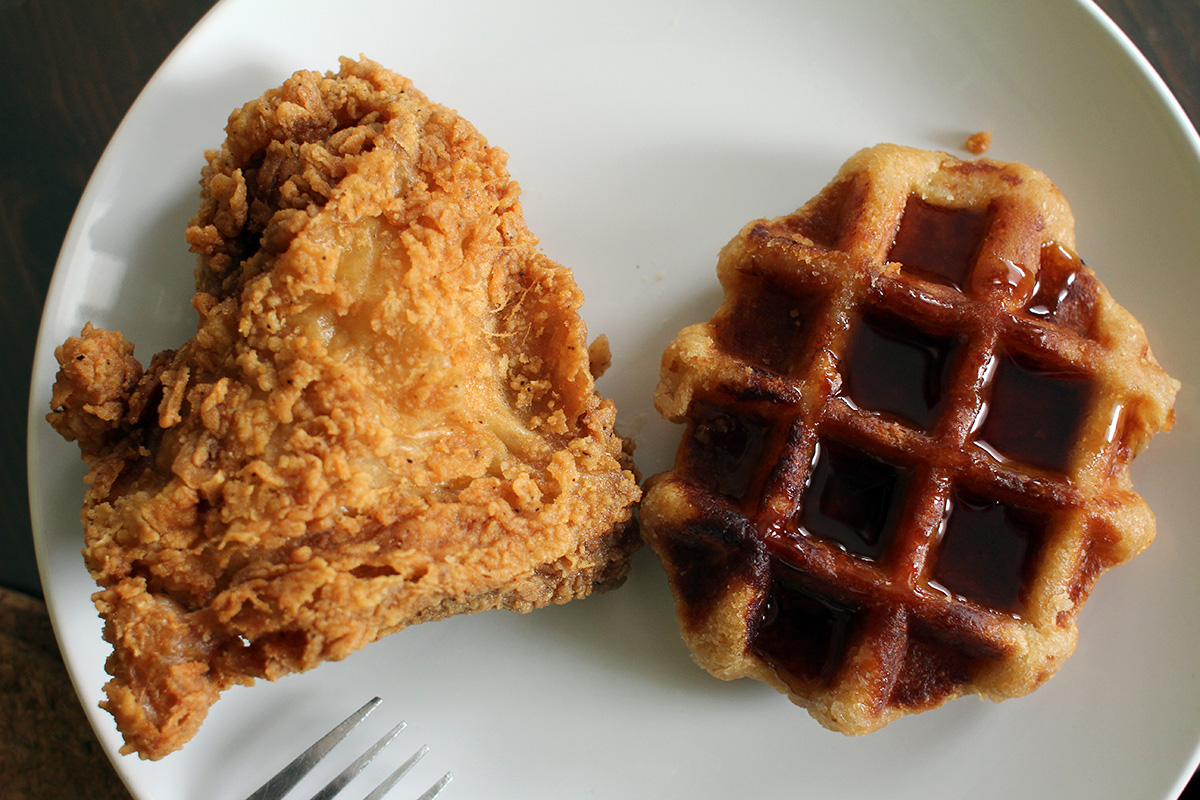 the chicken was okay, but similar to the fried chicken i could get from the porter square star market (which less expensive). the waffle was awful, like eating a piece of hard foam, no flavor, and the provided syrup was just an artificial mess of watery sweetness.