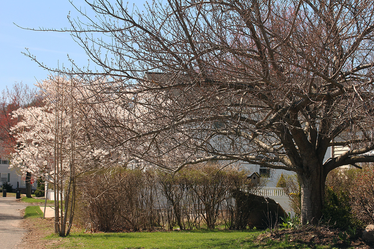 i briefly went down to beacon street to take photos of the Prunus subhirtella 'Autumnalis' now blooming. it's nice to know that even though i don't have any flowering cherries in my own backyard, there are plenty of varieties around the neighborhood.