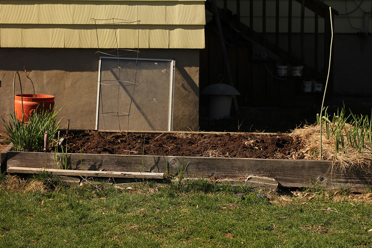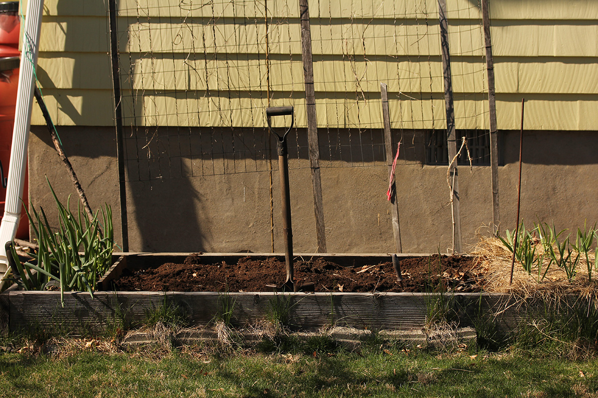 i finally made it to belmont by 1:45pm via fuji bike. it was another nice spring day, temperature in the 60's, with a breeze that still required a jacket, but felt much warmer in the afternoon sun. i spent the next 2 hours doing yardwork, mostly reducing the piles of maple branches. i filled two refuse bins, using a combination of anvil pruners, loppers, and pruning saw to cut the branches down to size. in between pruning i weeded some dandelions and creeping bellflowers and tilled the raised beds. the additional manure and peat moss i added to each raised bed made the soil especially fluffy. my seedlings will enjoy growing in this amended soil this season.