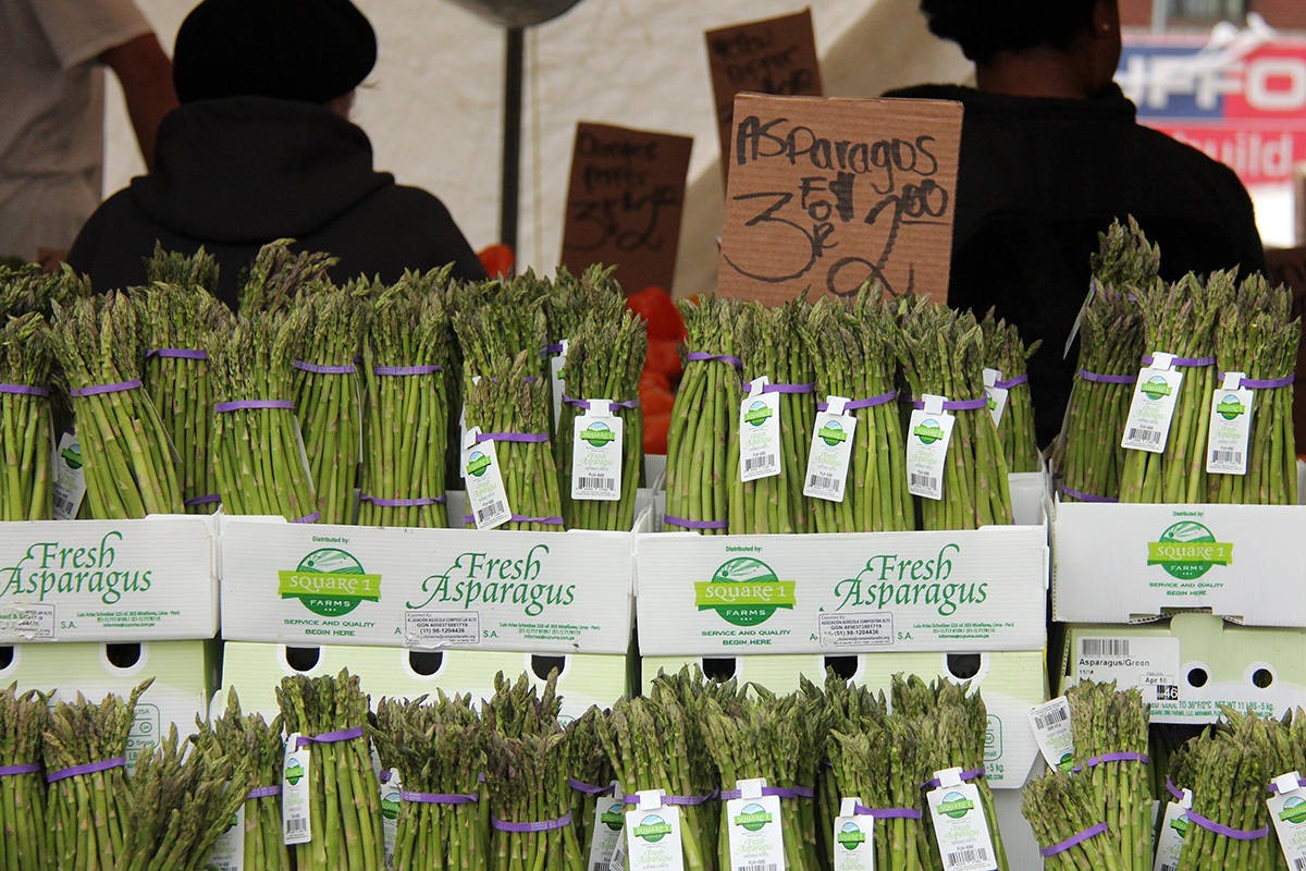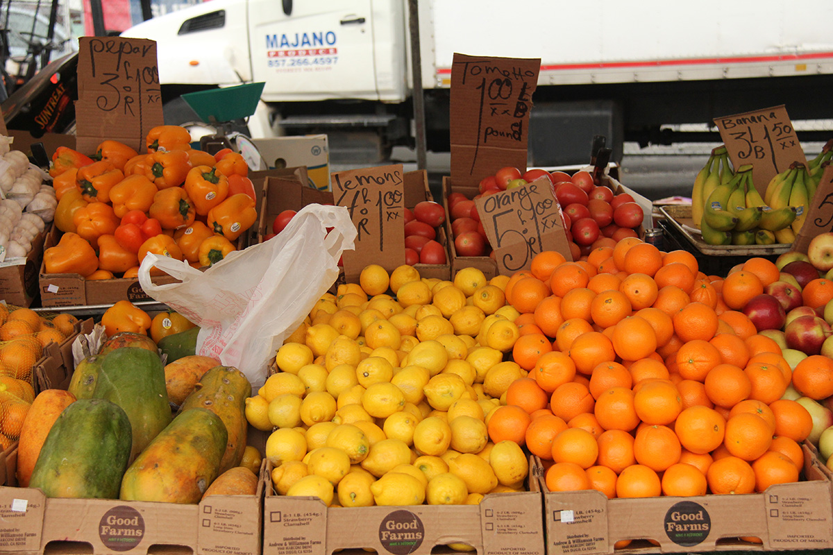 from there i went down essex to atlantic avenue, following the greenway until i arrived at the north end to haymarket. i didn't buy much, a lot more oranges were on sale but i didn't see any of the blood oranges i got last week. i did buy 4 bags of gold nugget mandarin oranges again ($2/bag). i also bought 2 dragon fruits ($1/each) and a bundle of asparagus ($1).