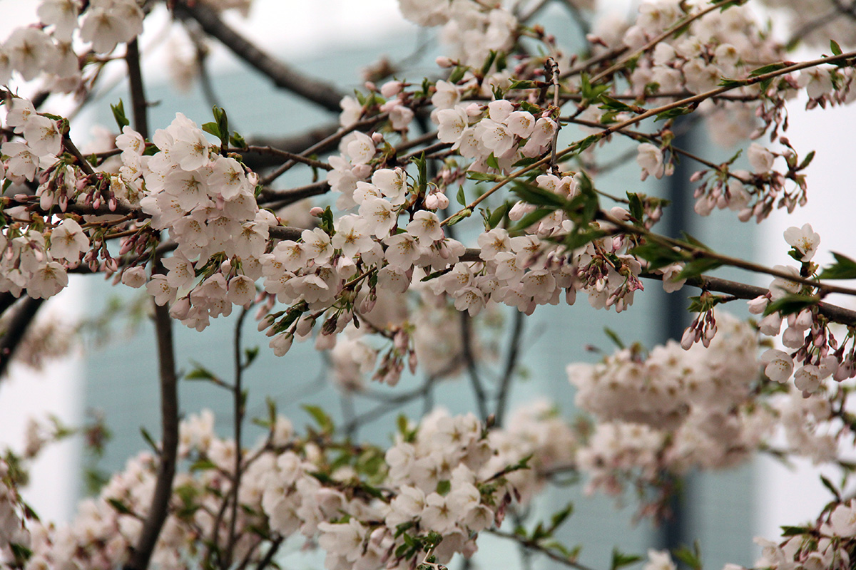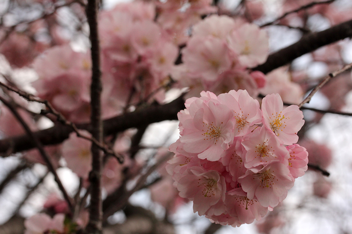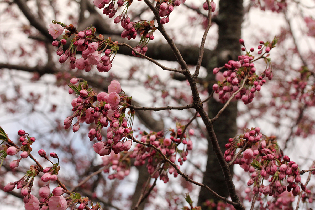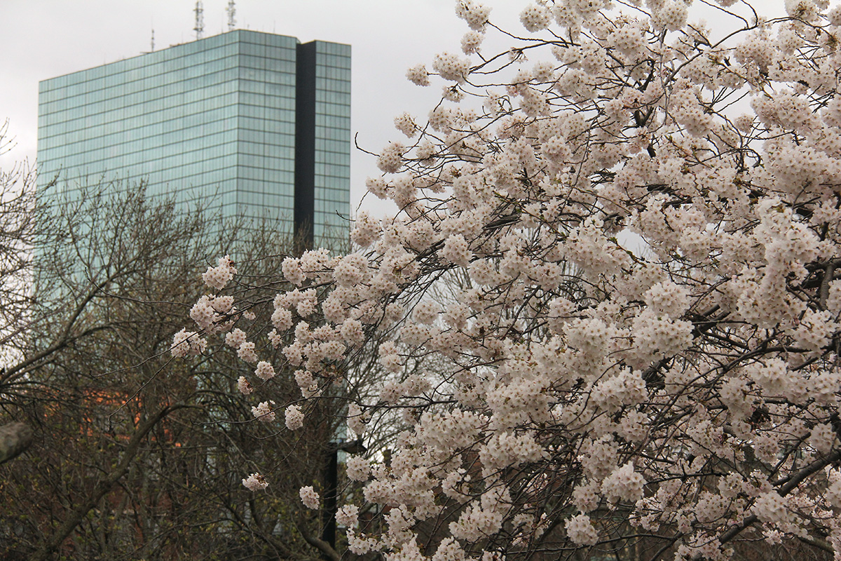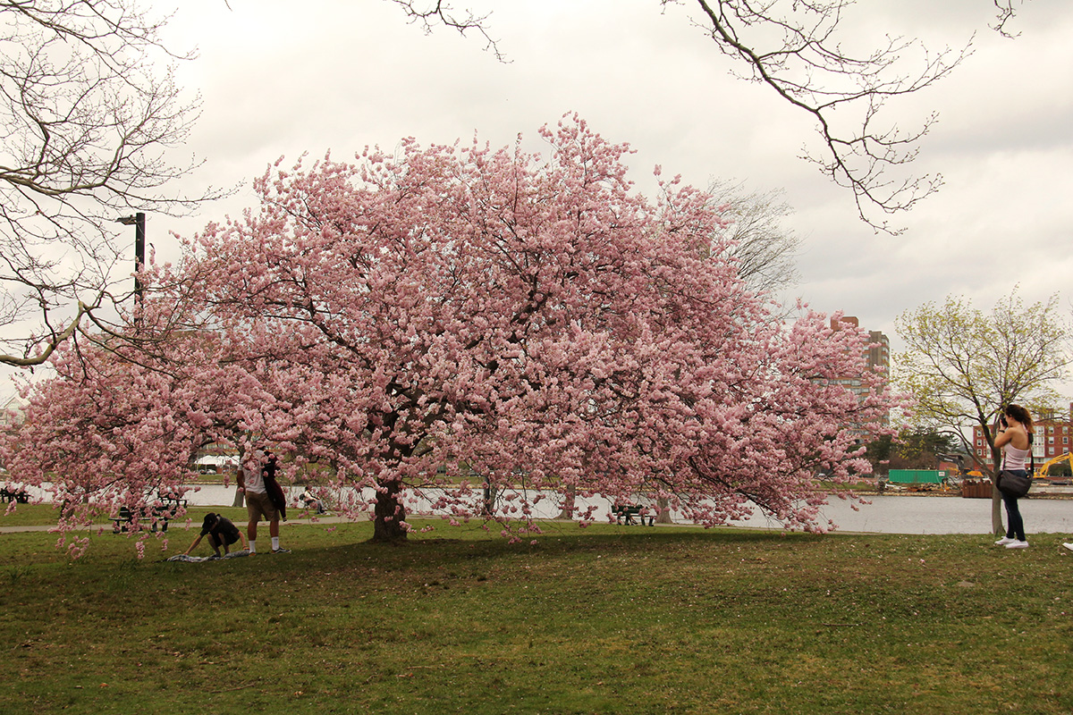 i purposely crossed storrow drive via a pedestrian overpass. i biked through BU's campus, then crossed the BU bridge so i could be on the memorial drive side of the river, across from microcenter, on magazine beach, where a week ago i already saw some flowering kwanzans. there were more flowers, but they were at peak yet, as there were plenty of buds yet to blossom. i tried taking some photos but it was very windy and the kept on swaying in the wind.