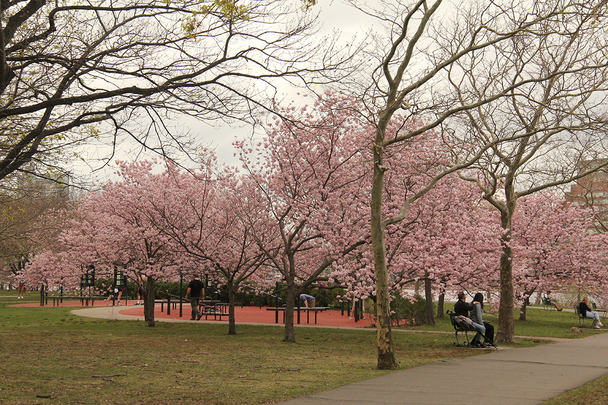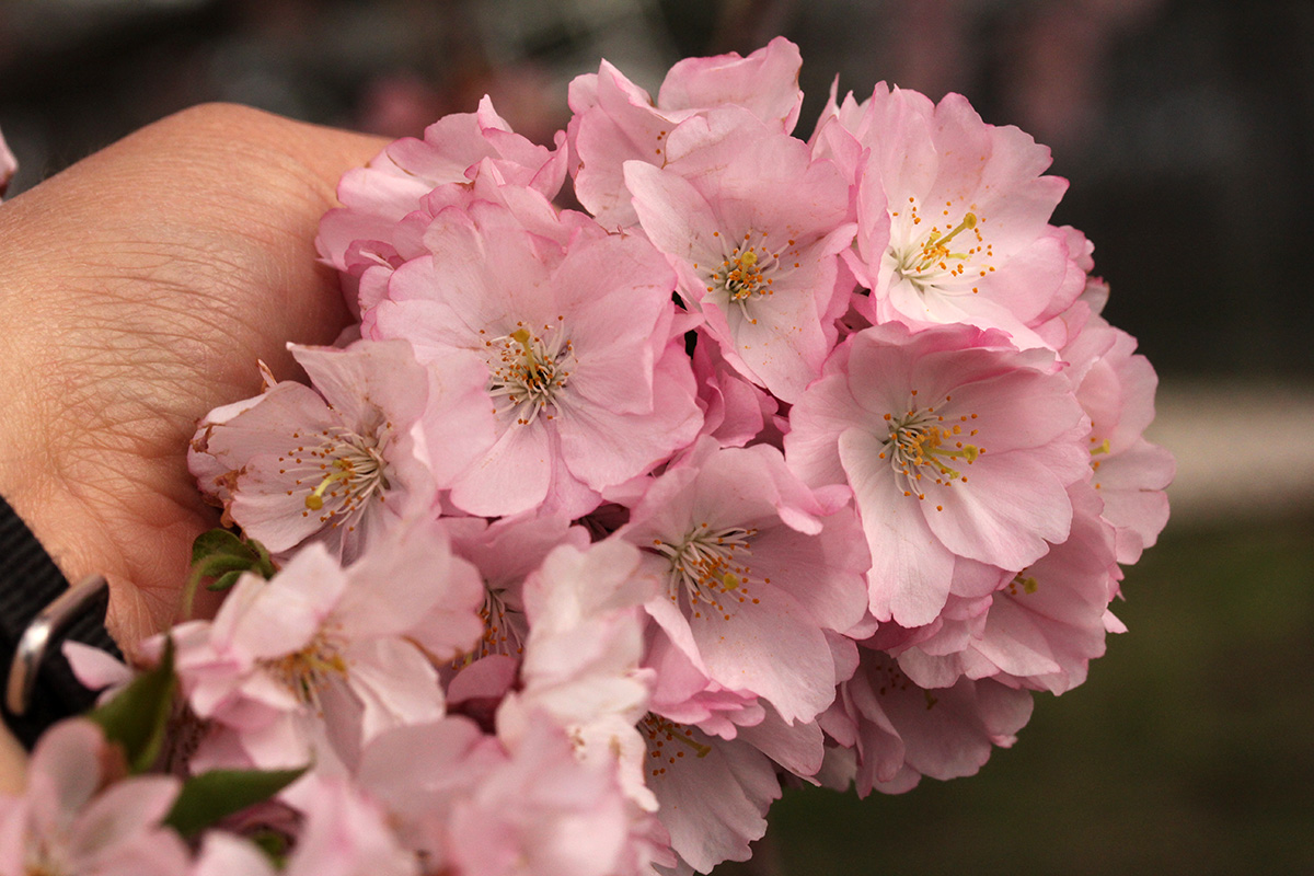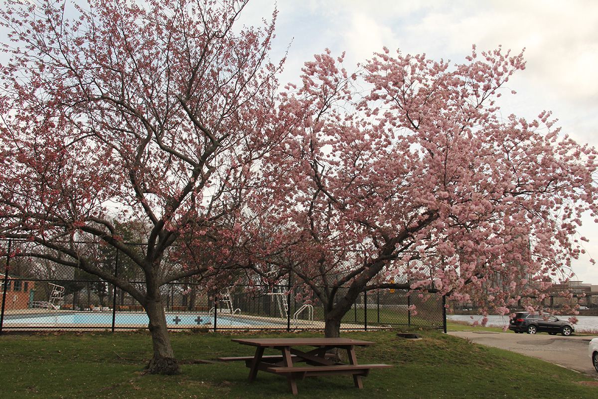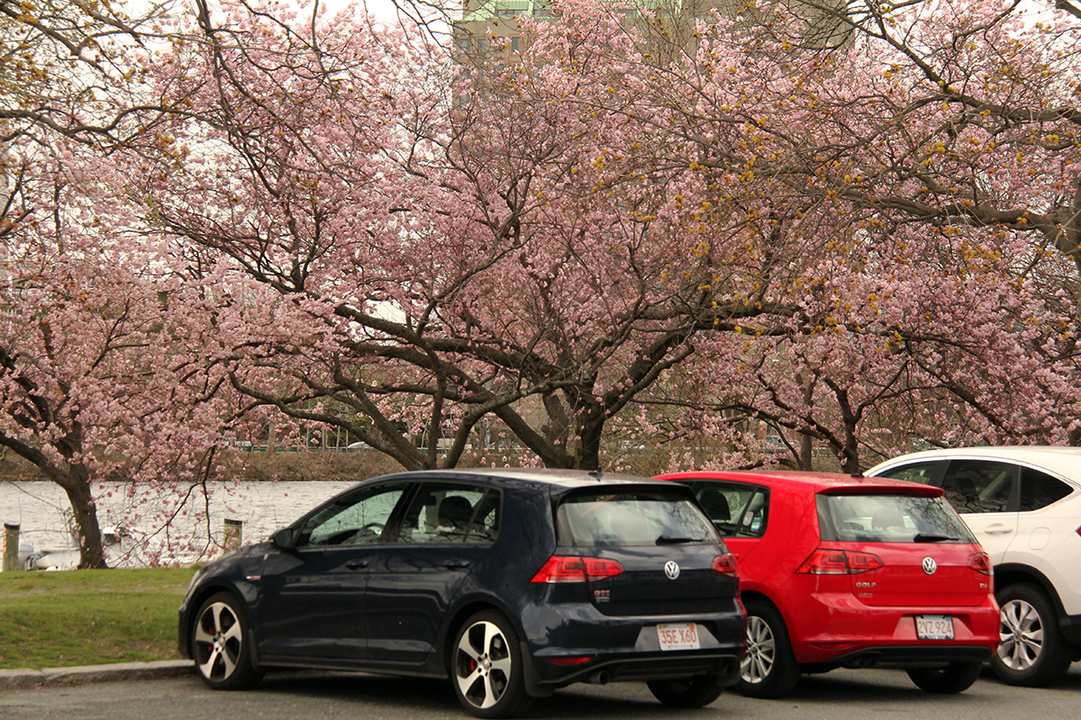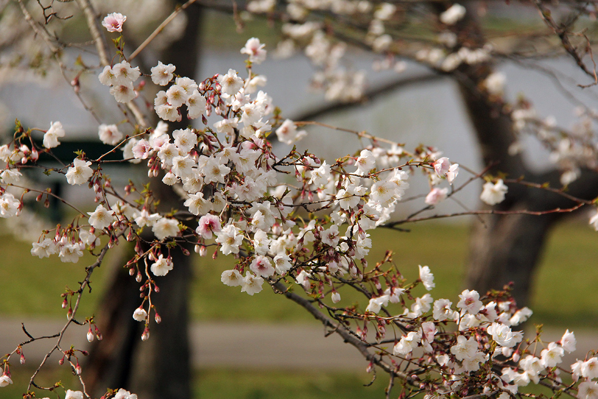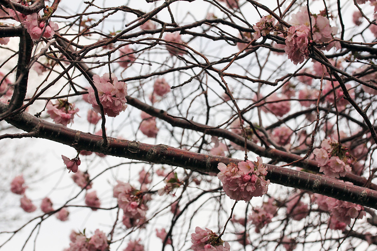 i purposely crossed storrow drive via a pedestrian overpass. i biked through BU's campus, then crossed the BU bridge so i could be on the memorial drive side of the river, across from microcenter, on magazine beach, where a week ago i already saw some flowering kwanzans. there were more flowers, but they were at peak yet, as there were plenty of buds yet to blossom. i tried taking some photos but it was very windy and the kept on swaying in the wind.