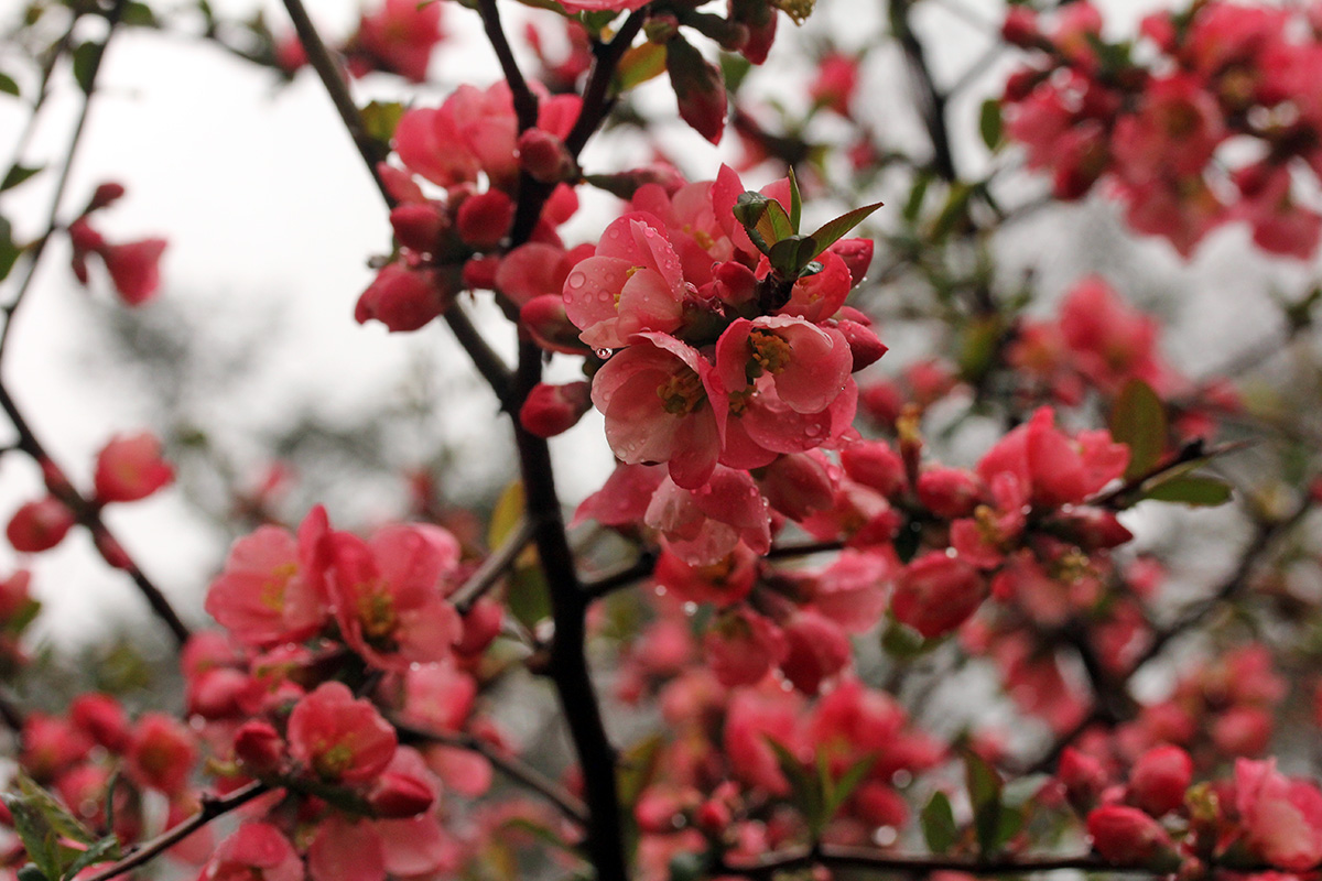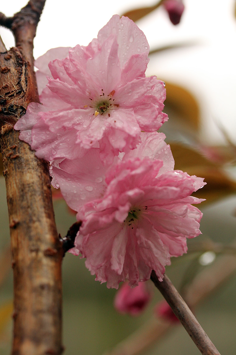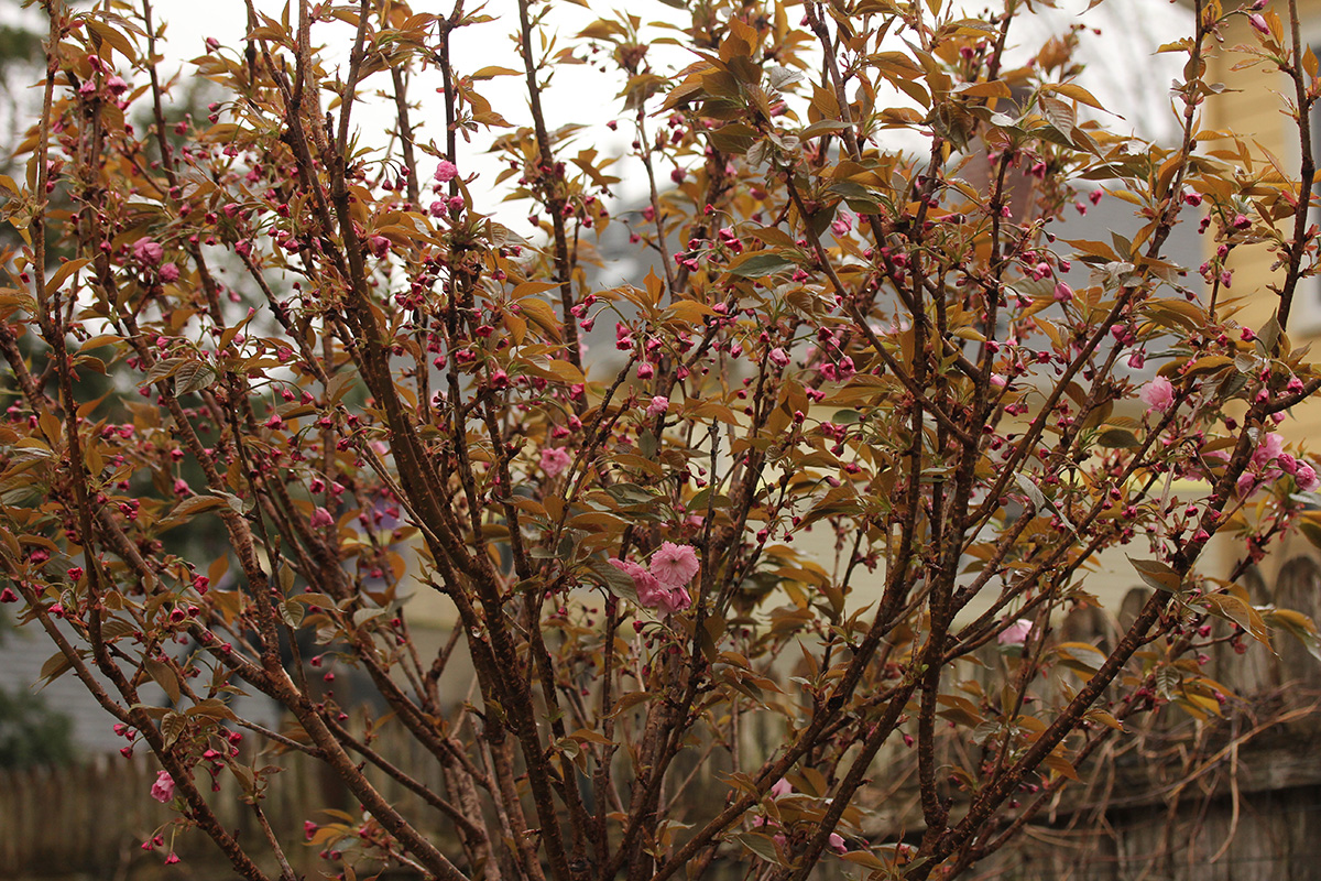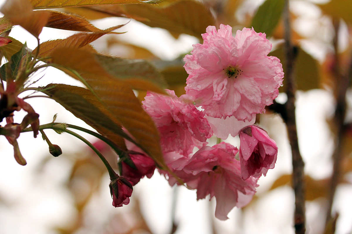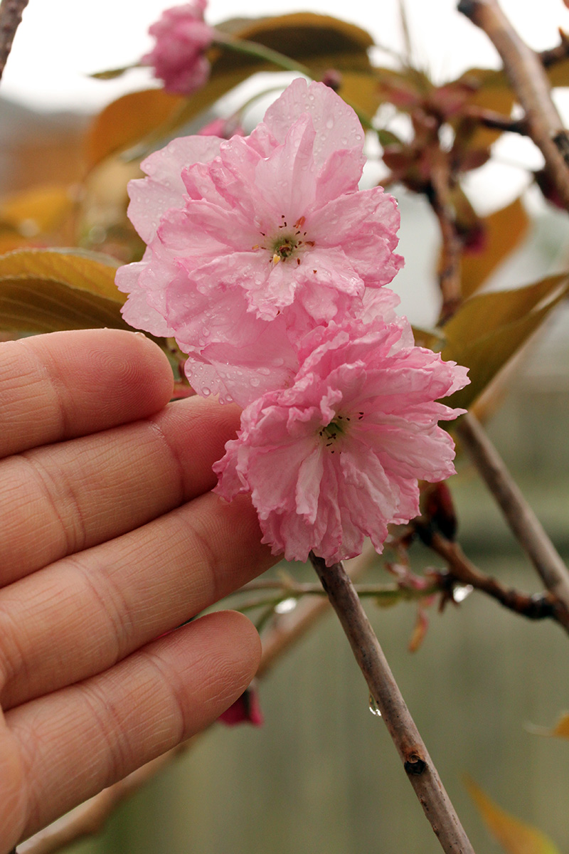 as it was still raining outside, there was nothing to do but stay indoors, though i did go out into the backyard occasionally whenever there was a lull in the storm to survey emerging plants. our kwanzan has started to blossom, though at this point more leaves than flowers. the blooms look rather wrinkly, perhaps just an effect of having just emerged from flower buds, and will hopefully fill out in the coming days.