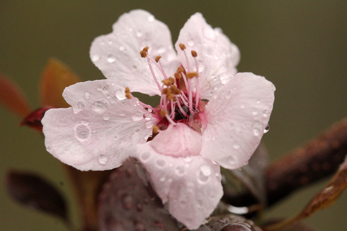 it was pouring rain by the time i got picked up. we stopped off at the cafe to drop of supplies before we drove my sister's godmother to waverley square for a haircut appointment. coming back, we saw red-leaf flowering plums everywhere, an ornamental tree we never really noticed before.