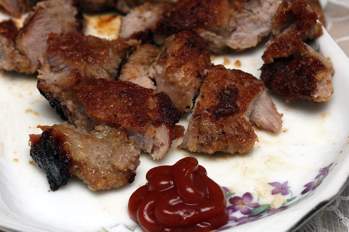 my father pan-fried some porkchops for dinner, plus roasting the haymarket asparagus i bought on friday. afterwards we ate one of the dragon fruits. this particular one wasn't very sweet, and had an earthy raw taste to it. my father was afraid to eat too much because he said dragon fruits give you diarrhea, so i ended up eating most of it, with no side effects.