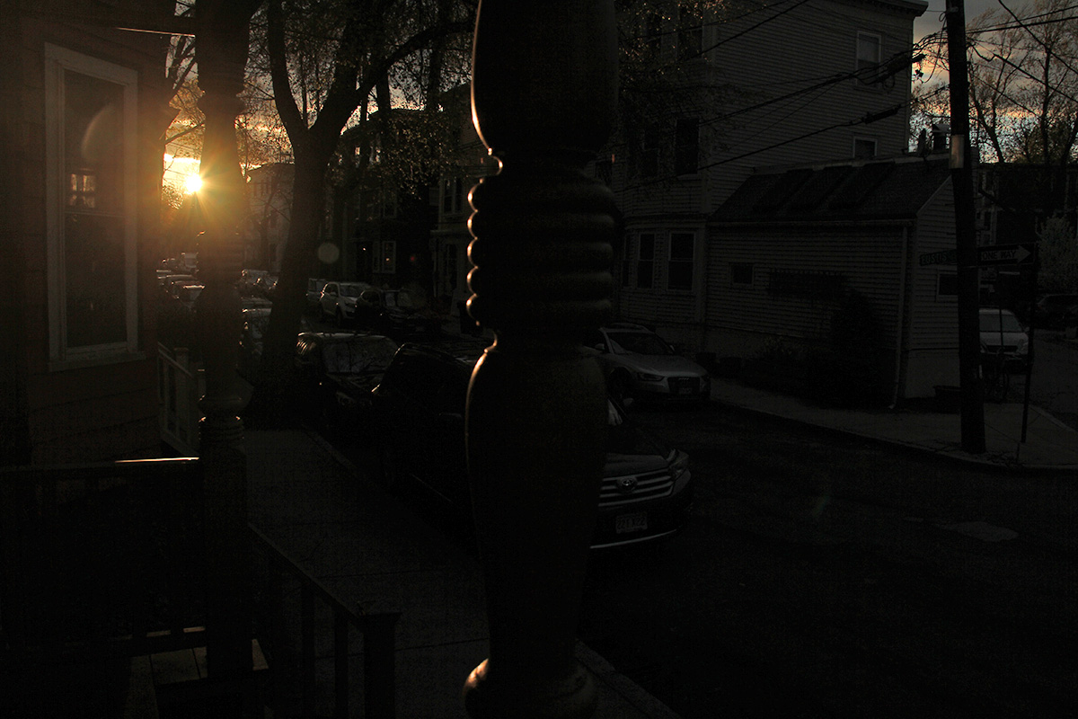 mark this day on the calendar as when the setting sun aligns exactly down the length of my street, creating this blinding display of light. a few weeks ago the positon of the sun in the sky was such that it reflected off of neighbor's windows and right exactly to where i usually sit in the living room.