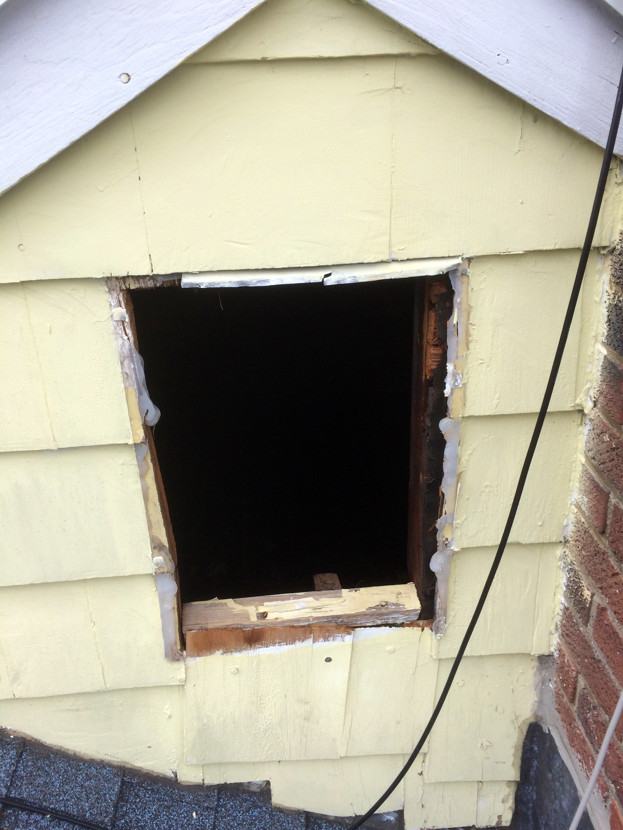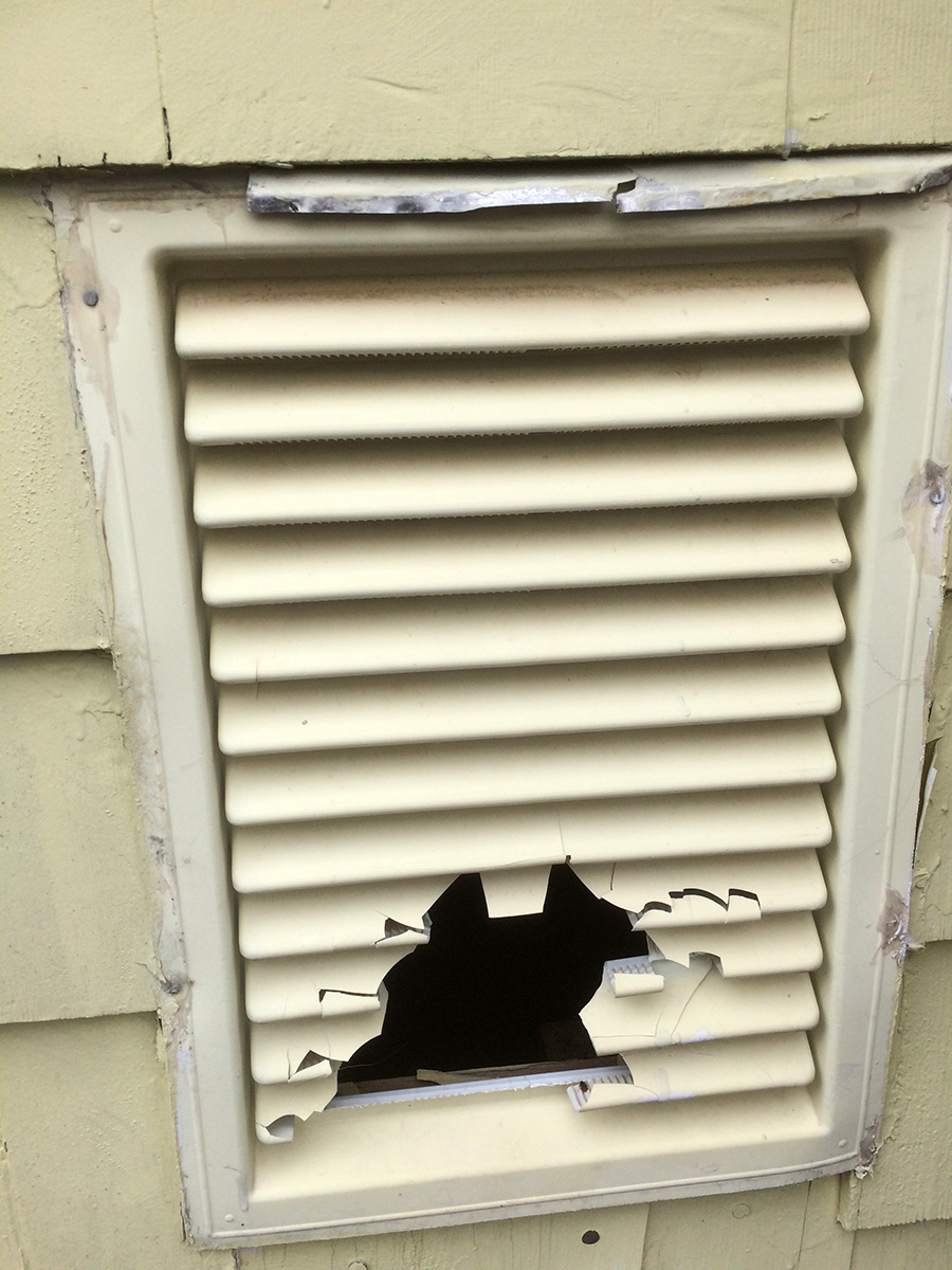 the vinyl gable louver itself costs $9, an exact match. we also got a tube of silicone caulk to seal the louver and a caulking gun (not sure if we had one at home, save us a trip of getting one from the cafe). it was easy to fix, although the silicone caulk was difficult to work with because it was so runny. i also got the wrong kind, white instead of color, but you couldn't see it anyway. my father put in a few screws to keep the louver in place. the only thing left to do now is to paint it.