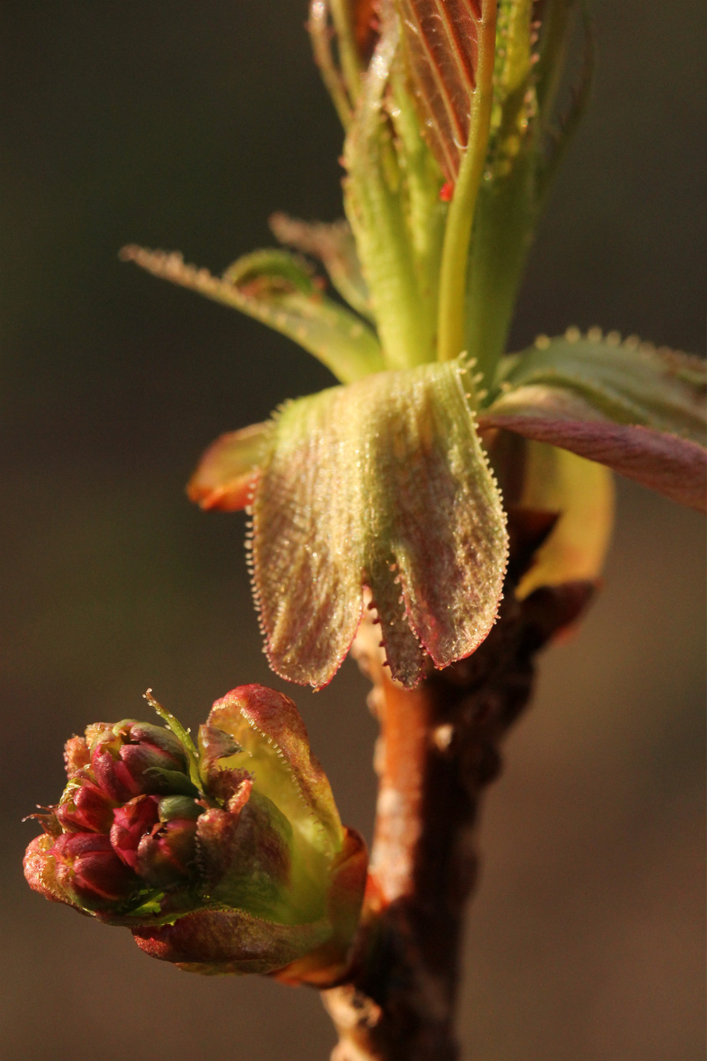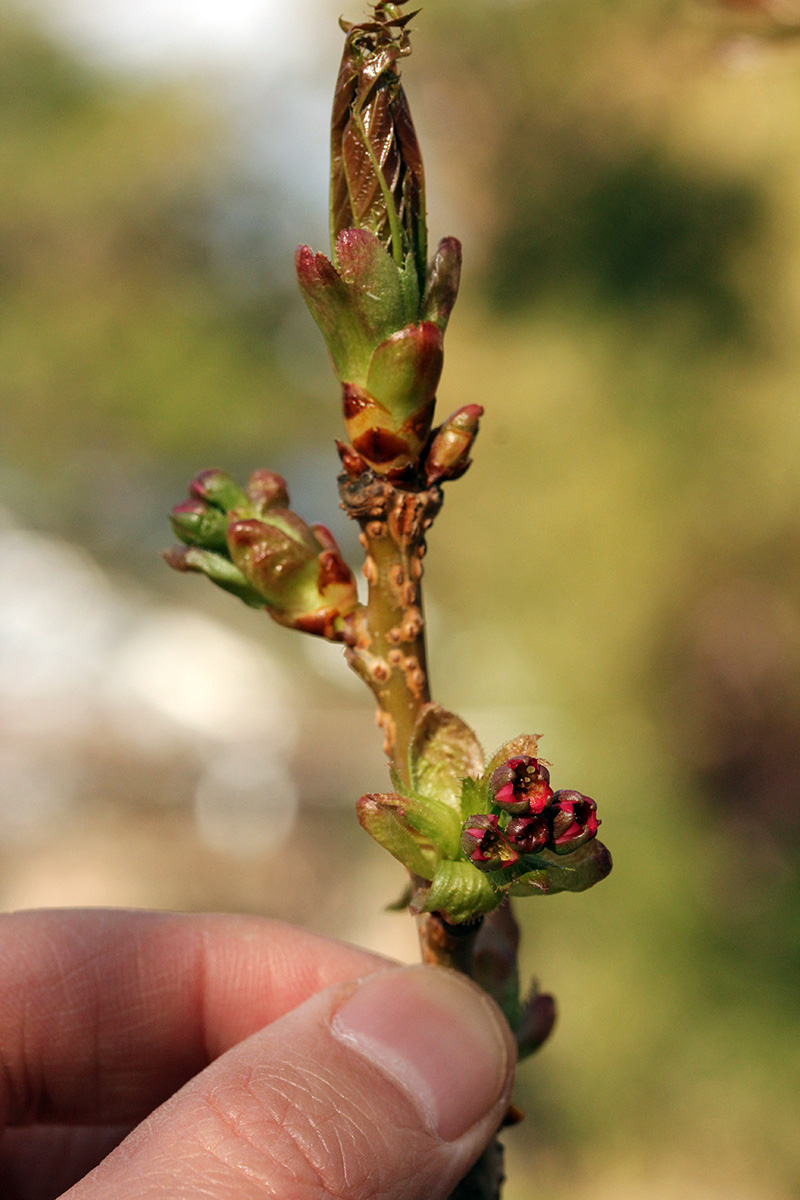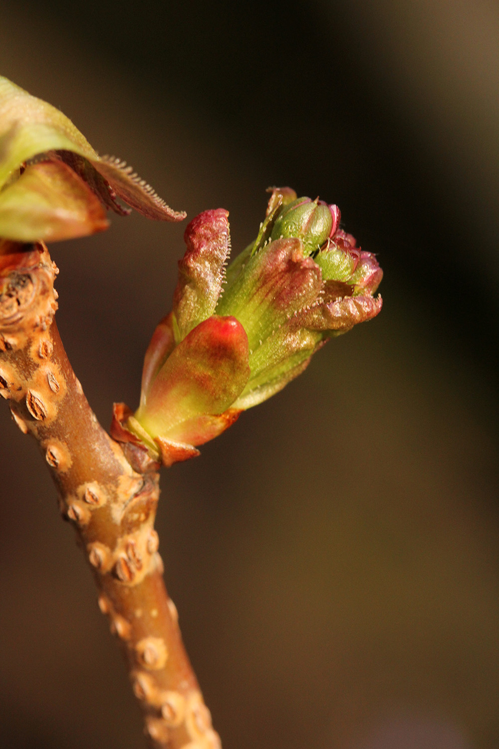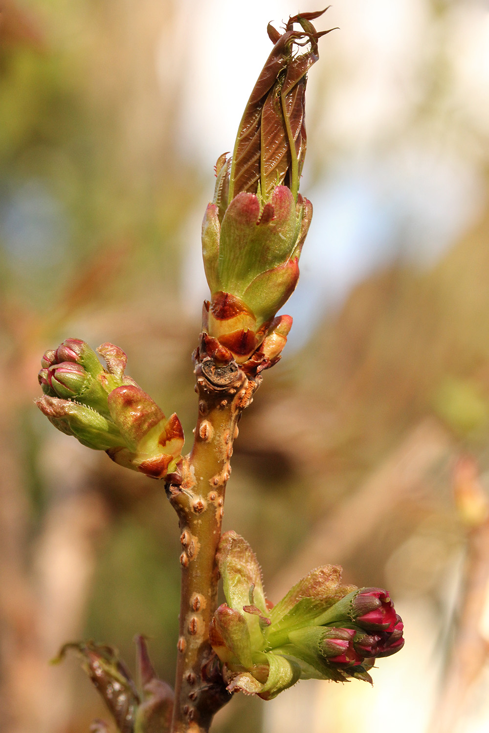 the bareroot kwanzan flowering cherry has developed flower buds after all, when we initially thought this year was going to be all leaves.
