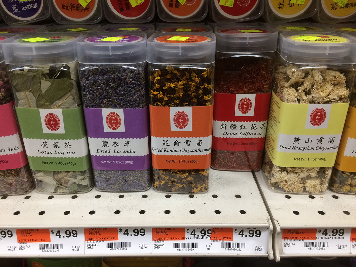 the parking lot across from south end ming's market was nearly empty and i was afraid the place had finally closed after my father remarked business wasn't doing well the last time we were here. turns out everybody was parking in the much larger adjacent parking lot, which apparently is free on weekends, or at least with validated parking. they had a collection of herbal teas, including kunlun chrysanthemum, something i've been drinking quite a lot these days. i was actually rationing my supply because the one that i have was a gift from somebody to my parents, but apparently it's not that rare (at least i can get it at the asian supermarket) so i'm going to be more generous with my portions (though 5 flowers is enough for a tall glass of tea, with several refills without losing flavor). they also sold something called a slimcado (slim avocado) which i'd never seen before.