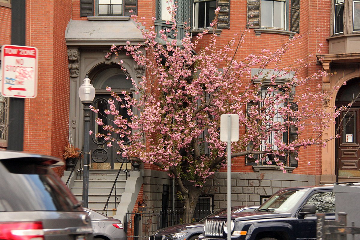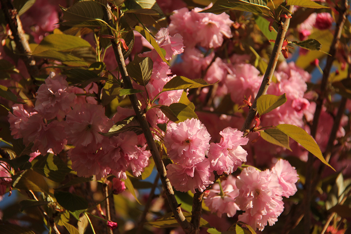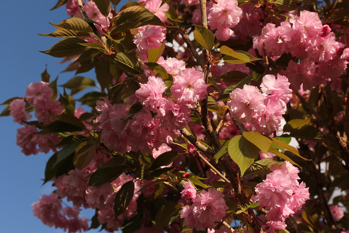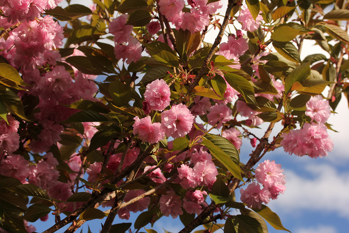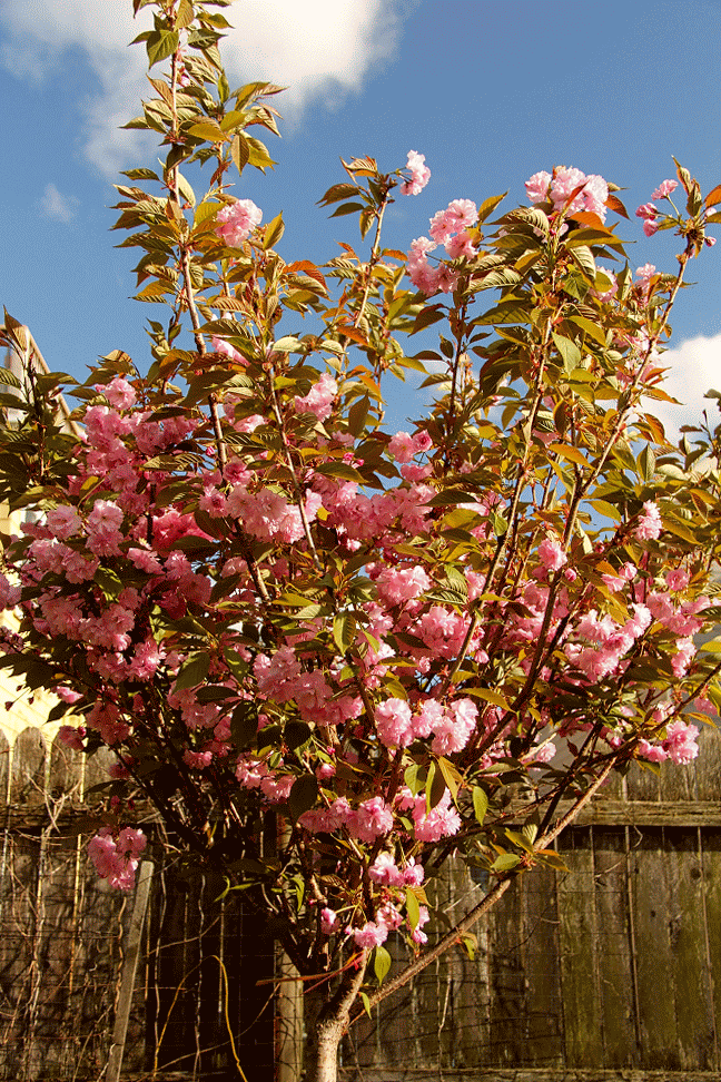 more flowers have blossomed on the kwanzan since last weekend, although the tree is not yet enveloped by a pink cloud of petals. despite all the rain we've had over the past few days, not a single flower petal has been shed yet.