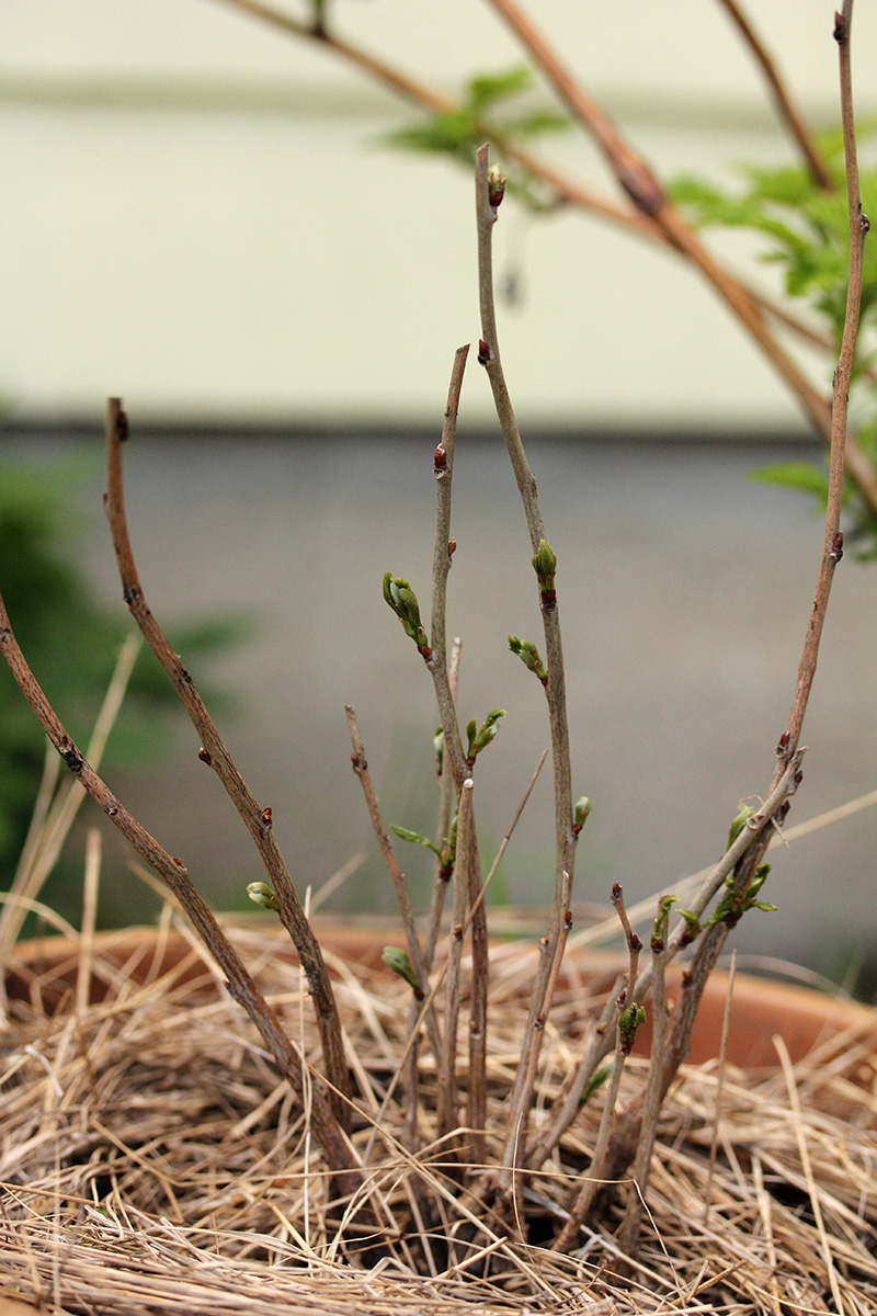 the wisterias are also slowly starting to come alive, swelling their leaf buds. we have two large potted wisterias, and two smaller potted wisterias, and one that doesn't have any roots but lots of branches and buds that i planted in a medium pot. we would never plant them back in the ground, but we're hoping to train them into flowering trees, like the ones we saw at mahoney's.