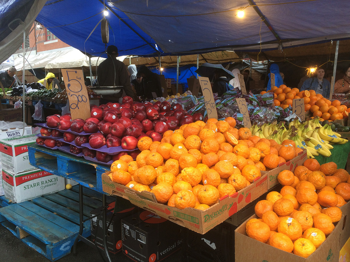 nobody carried $2 bags of gold nugget oranges anymore. a few vendors had larger gold nuggets at 5/$2. i didn't bother getting them. i didn't however pick up some ugly fruit for $1 a piece. the vendor was complimenting me on scoring a good deal, said nobody knows how good these oranges are. i also got some navel oranges 6/$1. finally, a fyffes pineapple ($2) and a bag of onions ($1). by the time i was ready to leave, the rain went from a shower to a drizzle. standing under the eave of building, i checked the doppler radar on my phone: the rain wouldn't stop until 4:30pm. i had no choice, resigned over the fact that i was going to get soaked. at least i was going home and could change out of my wet clothes afterwards. i got back by 3:20pm.
