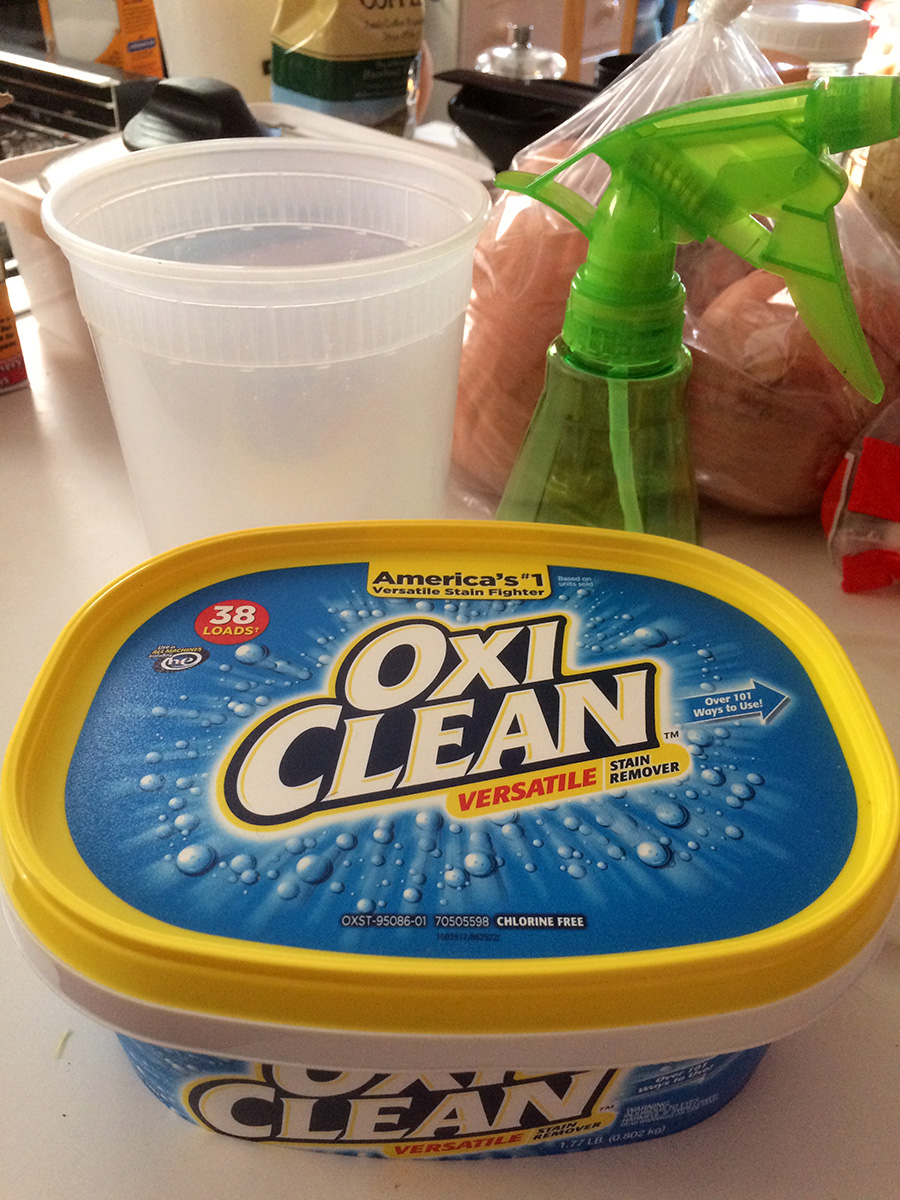 i've never used oxiclean before, but heard good things about it, and vaguely remember old oxiclean commercials where it performed feats of laundry cleaning miracles. i didn't even know how much it cost. even though i just needed a little bit (i should've checked my parents' place first but i forgot), the smallest size i could find was a 1.77lbs. tub of powdered oxiclean for $4.99.