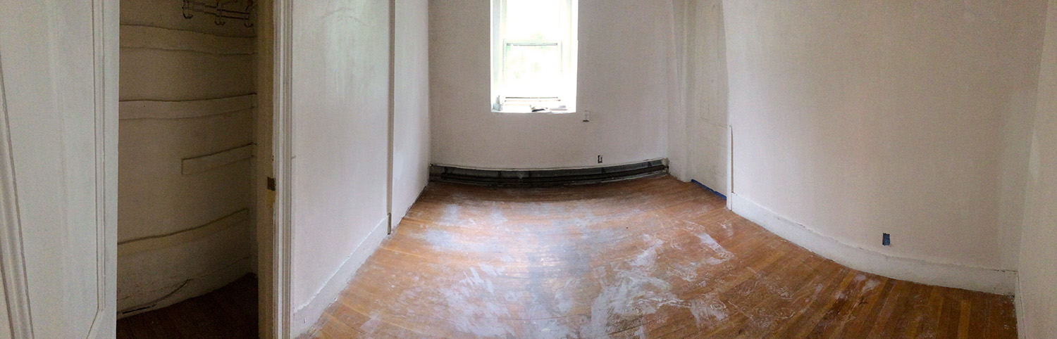 i'd plan on biking to belmont this sunday but it was rainier than i expected. my father ended up coming to get me with the car since he was going to the upstairs apartment anyway to do some more work. he brought the shopvac to clean some debris in the stairwell. we emptied the closets since the wooden floors inside will also be sanded and coated tomorrow. while ripping off some makeshift wallpaper in the small bedroom closet we discovered a hidden power outlet. finally my father tried to replace a faulty circuit breaker. he was doing it live since this junction box didn't have a power main cutoff. he tested the wire and was surprised to see it wasn't live. nevertheless, he moved it out of the way while he tried to insert the new circuit breaker. unfortunately the breaker wasn't the right size and wouldn't clip into the box. however, when he put back the old breaker, it suddenly started working again. that only lasted for a short while because when he turned on the light toggle in the stairwell, it suddenly popped the breaker. my father was going to fix it but the light switch was embedded in the wall (because the contractor layered over the walls with sheet rock) and he couldn't take it out. we'll need to have the contractors pull out all the switches and outlets before we can do anything. my father also bought a pair of LED ceiling lights but those won't go in until the walls have been painted.
