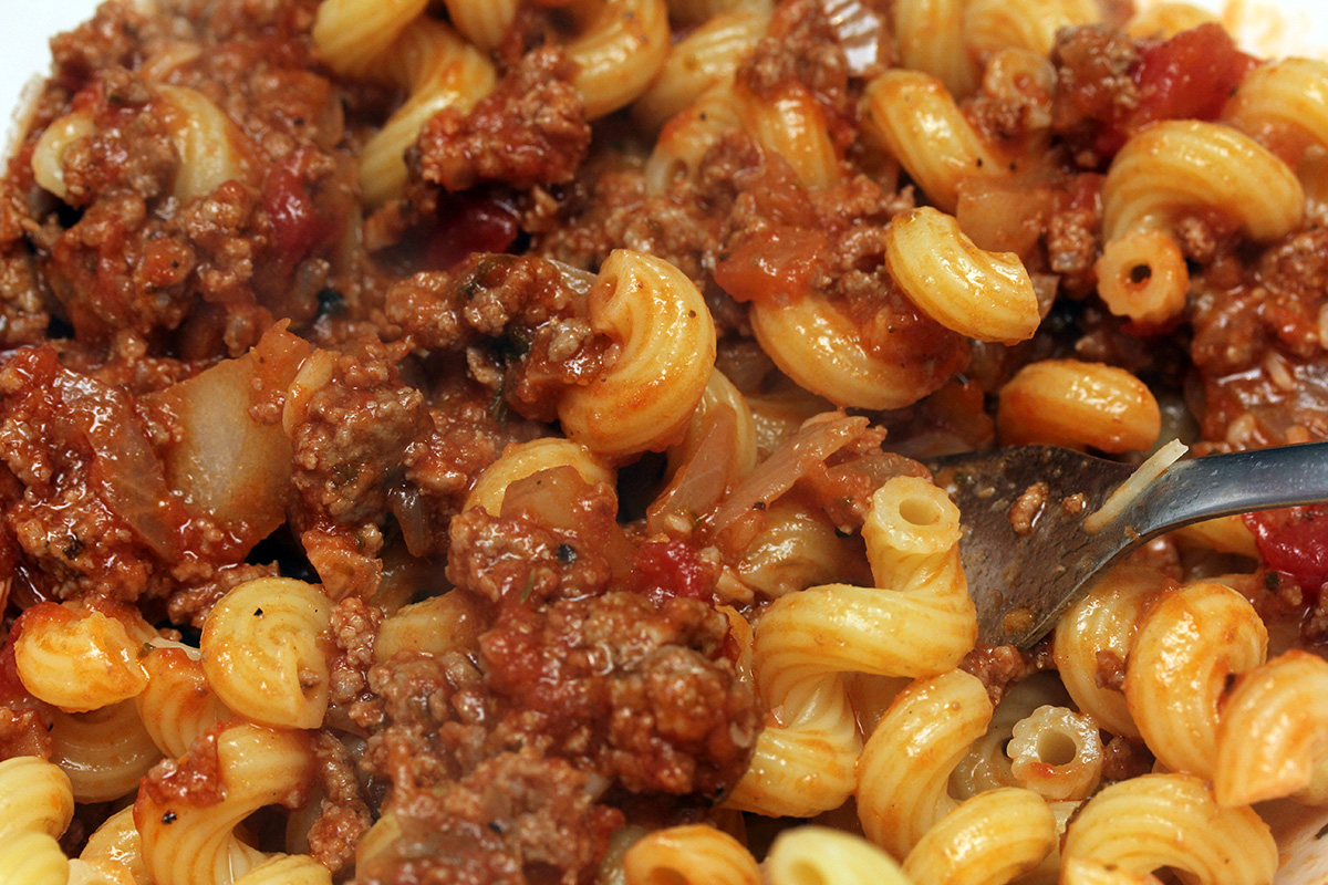 a late lunch combined with some hard sourdough pretzels i bought meant i wasn't hungry until later in the evening. into my meat sauce i added some leftover anchovies i had in the fridge. instead of spaghetti pasta i cooked up a cup of cellentani. the sauce was okay, but a little bland and oily because i used 85% lean beef. next time instead of beef i should get some ground italian sausages which have better flavor. even though the anchovies disappeared into the sauce, i probably added too much because i could kind of taste it, and anchovy in recipes is best when i don't notice it. i never had cellentani before, figured they'd be like macaroni. they were a little tough and chewy but i liked that.