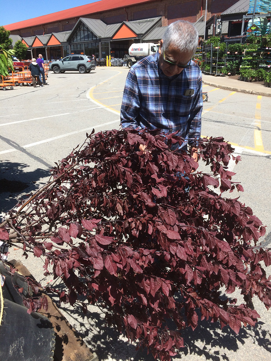 we checked out their parking lot garden department before leaving. it was a very windy day and a lot of plants were getting toppled. home depot was surprisingly busy this late morning, which was surprising. maybe all this warm and sunny weather is getting people in the mood for home renovation and garden work.