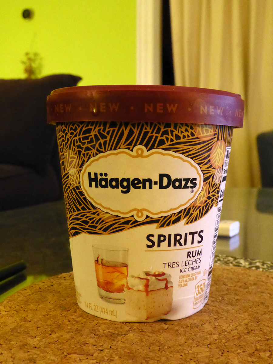 for dinner i first ate a salad (thousand island dressing) before making some ready-made white cheddar cheese shells later in the evening. for dessert i tried the new häagen-dazs rum tres leches. it was weird, had chunks of cake embedded in the ice cream, but there was a strong rum flavor and it wasn't too bad.