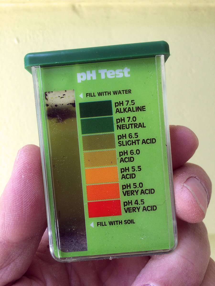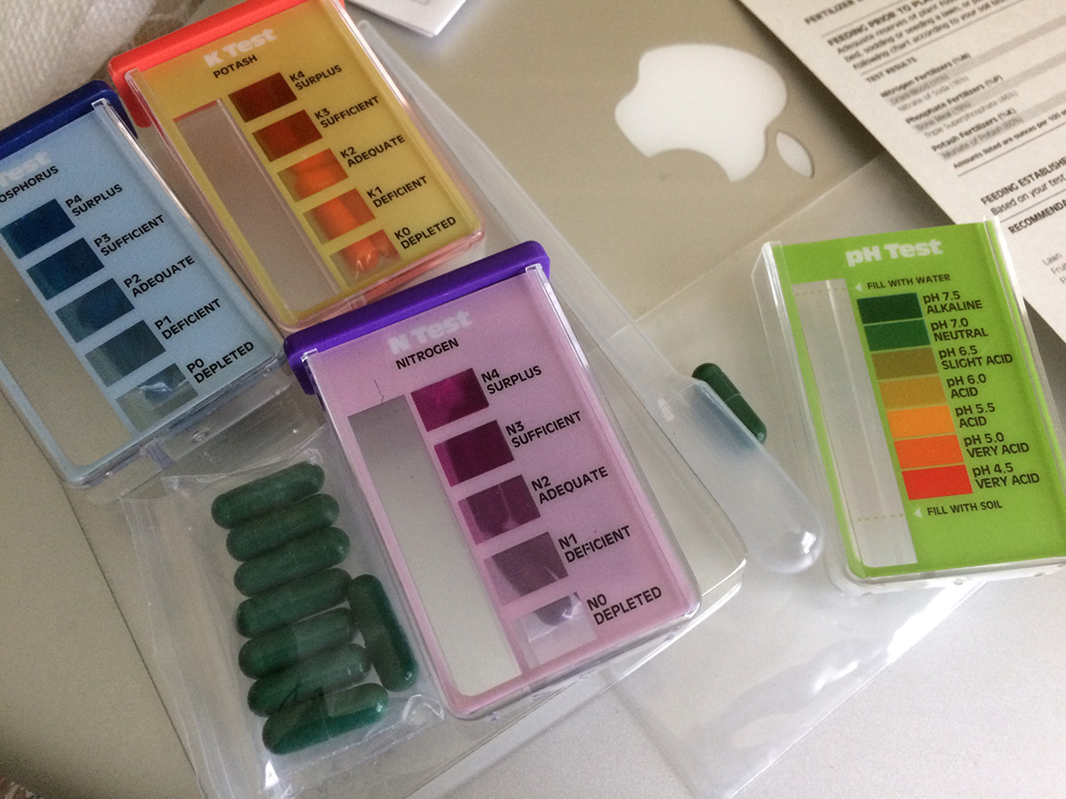 i'd forgotten i had a soil test kit (luster leaf rapitest soil test kit) until i rediscovered it a few days ago stashed away in a sunroom shelf. i purchased it back in june 2012 and only used it once to test some lawn soil (pH 6). i took a reading of one of the potted jasmine soil. the pH was 6.5 - in the immortal words of anatoly dyatlov, "not great, not terrible." jasmines prefer acidic soil, and can go as low as pH 5. but the slightly acidic pH might be preventing the plants from absorbing the iron that it needs. the leaf yellowing could very well be chlorosis. that meant i could try some iron foliage spray first to see if i can bring the green back. an earlier search for "liquid iron" on the home depot website showed they didn't carry it. but i figured hillside garden supply on blanchard road might have what i was looking for.