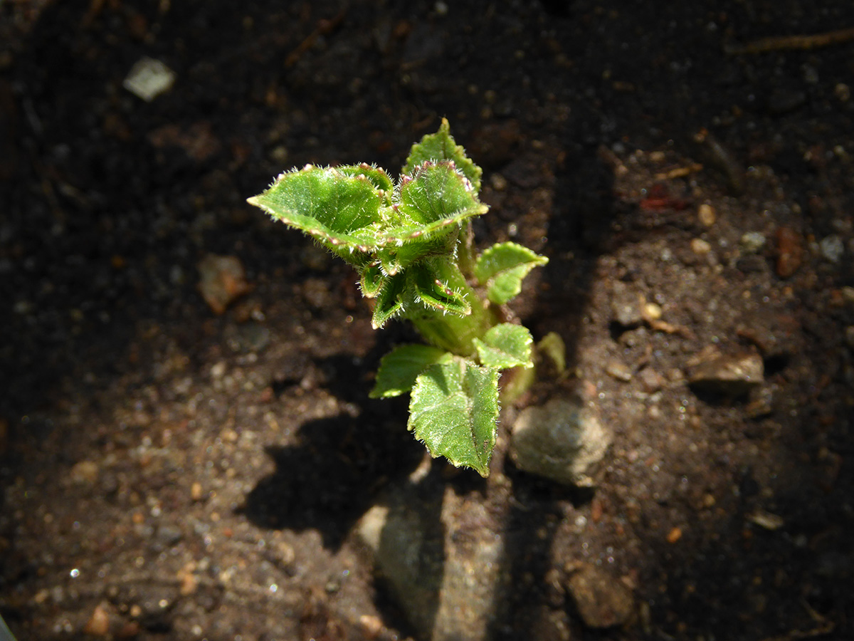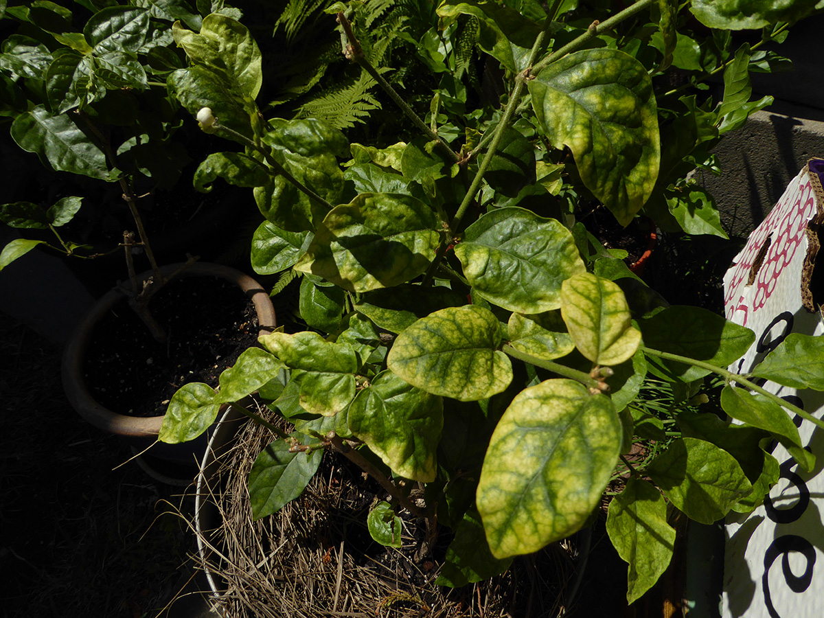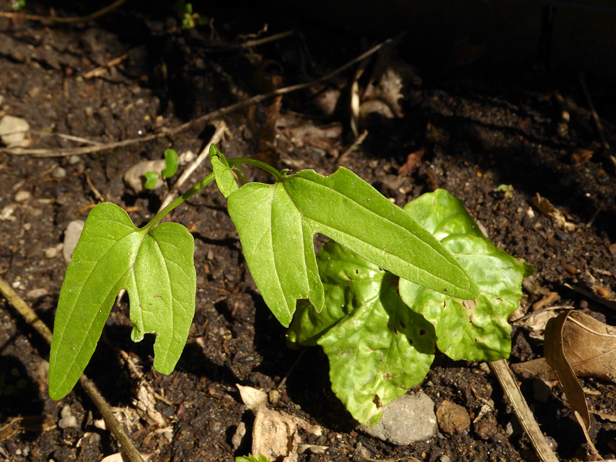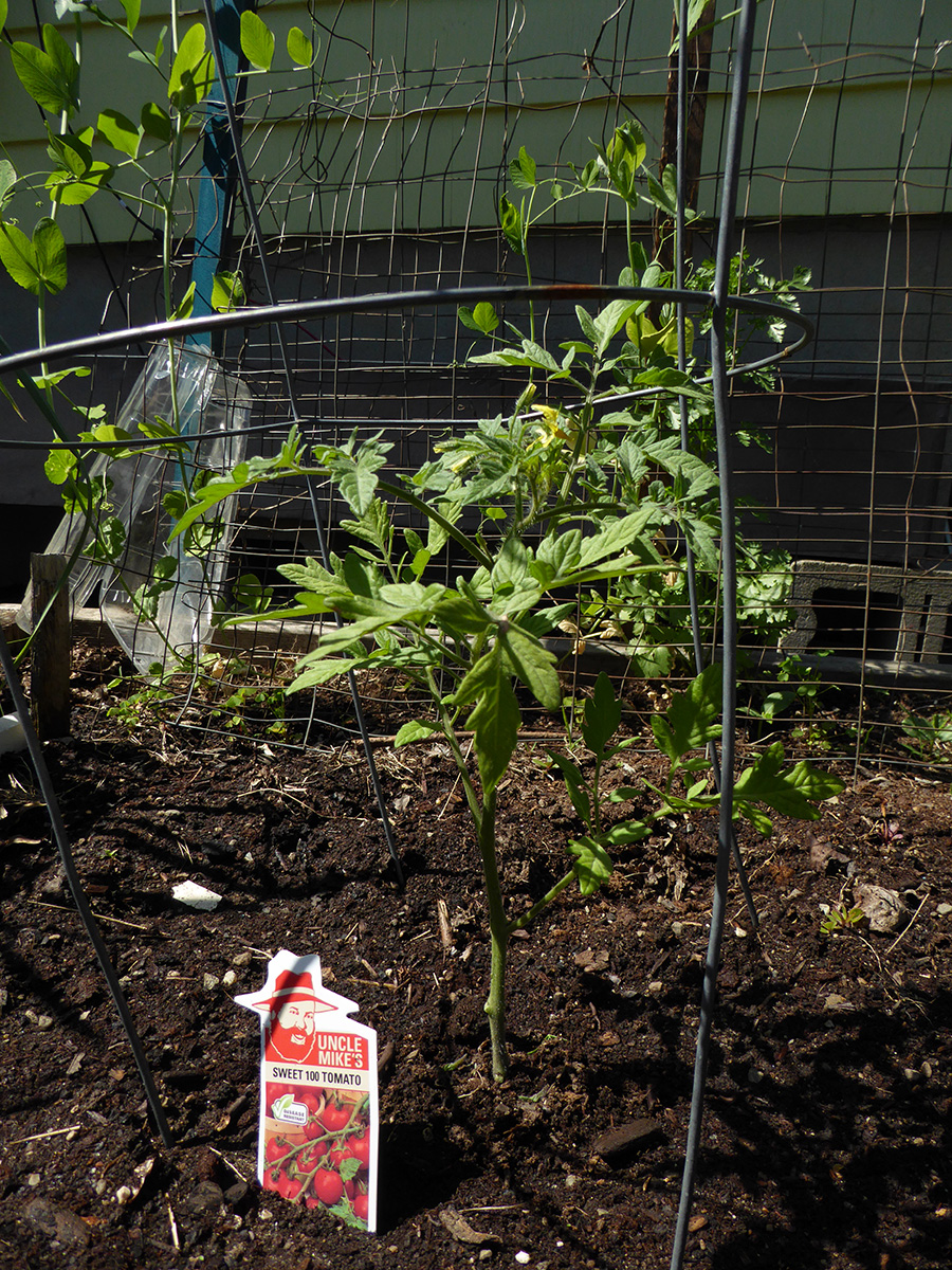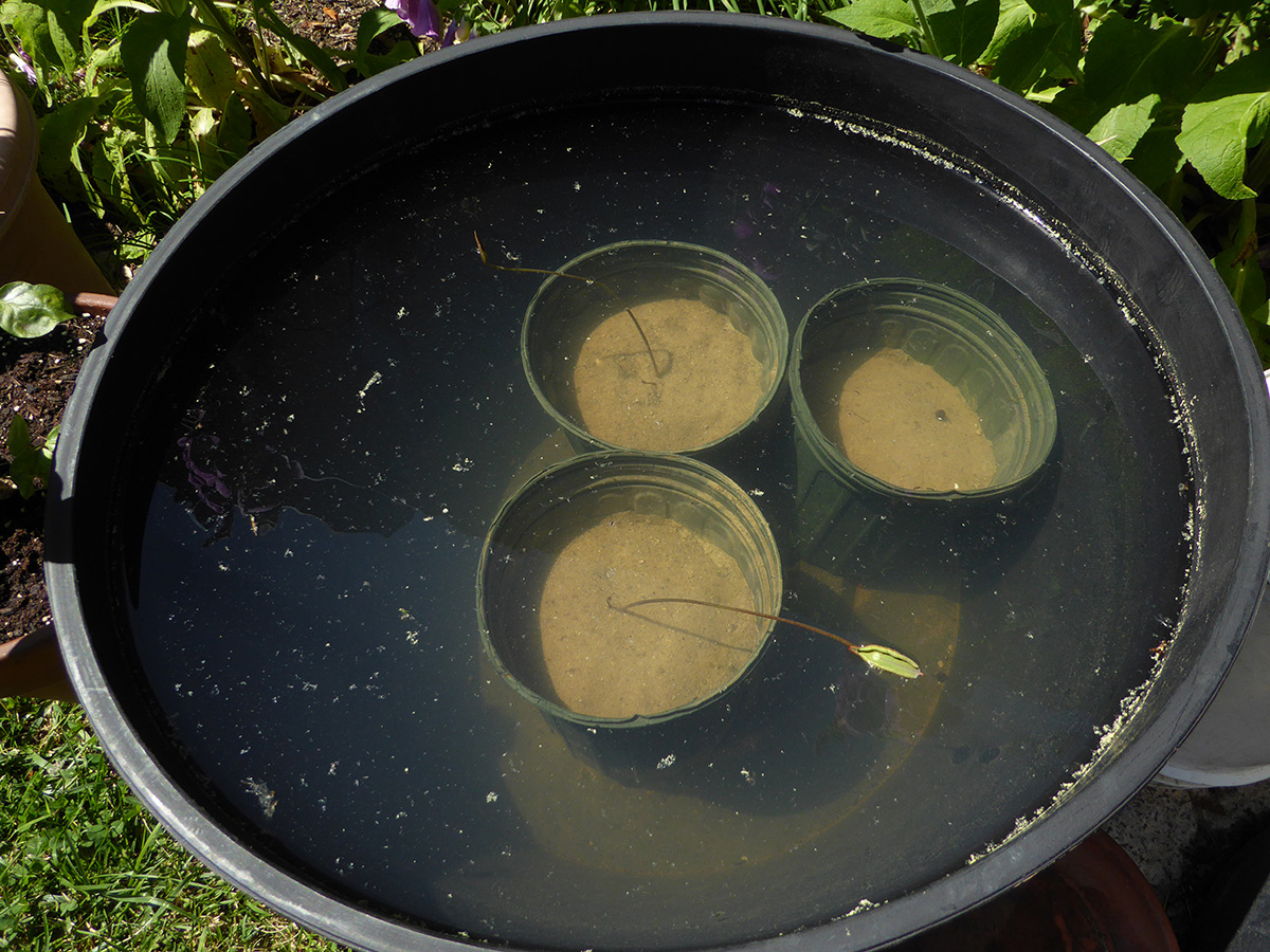 elsewhere in the garden: i noticed no difference in the iron treated jasmines, the leaves still show signs of chlorosis. we moved them to a sunny location, hopefully the light will induce the leaves to turn green. i noticed this last week, but the morning glory and moon flower seeds have germinated along the southern wall. they will grow slowly because the fence blocks the light, but once they crawl up the trellis they will get the sunshine they need. a few dahlias have also sprouted, i put plastic collars around them to protect them from possible critters.