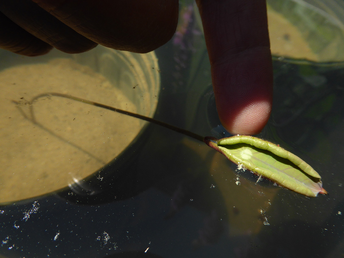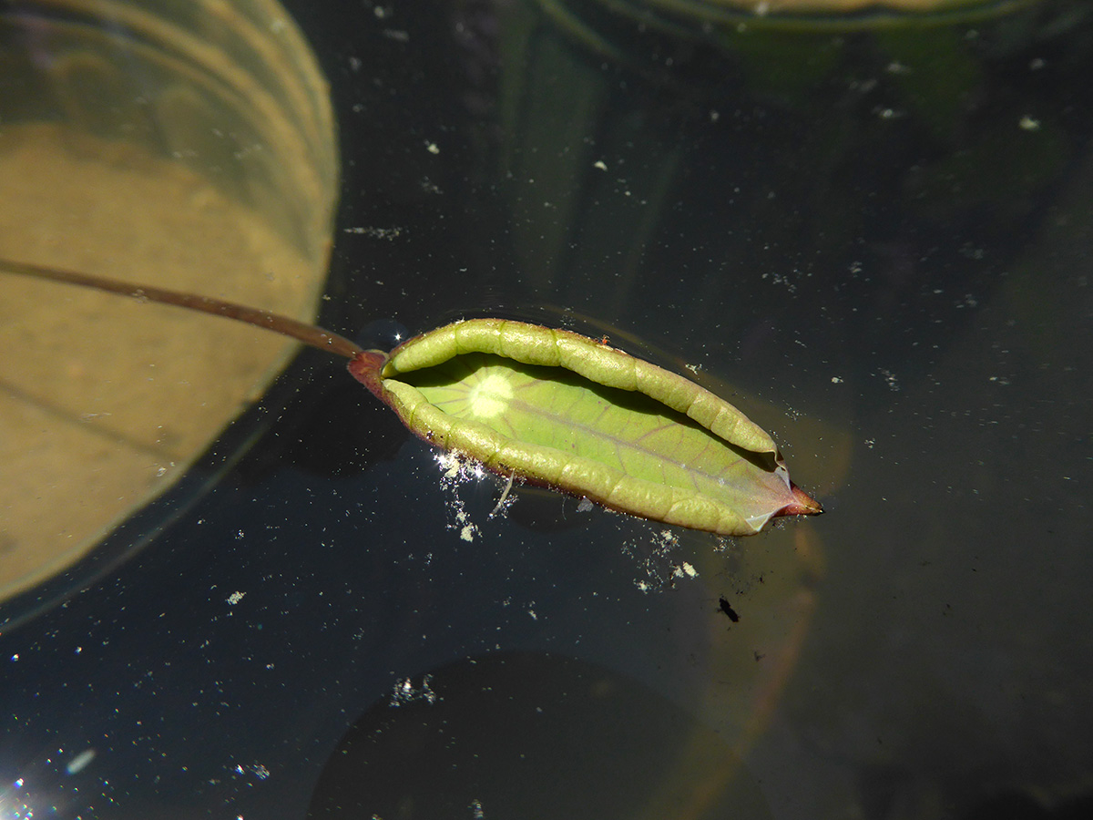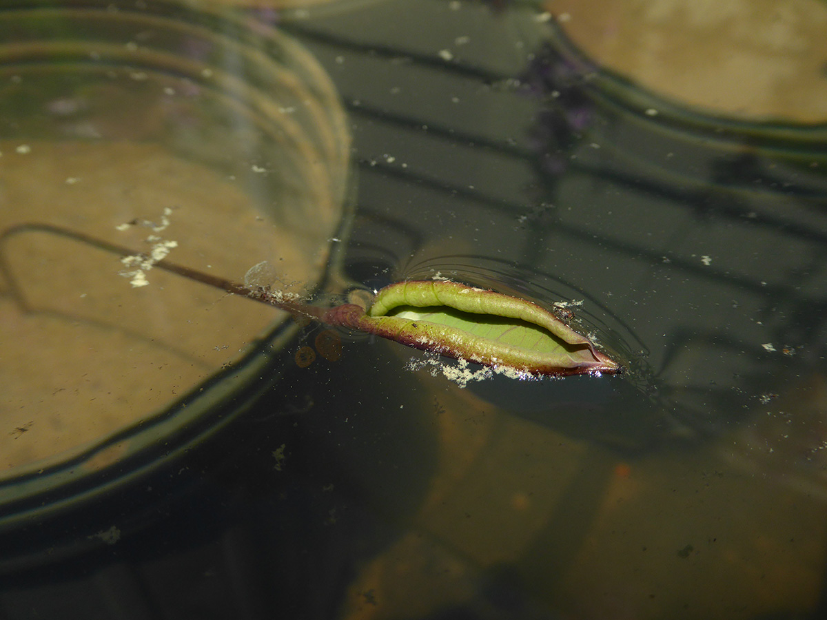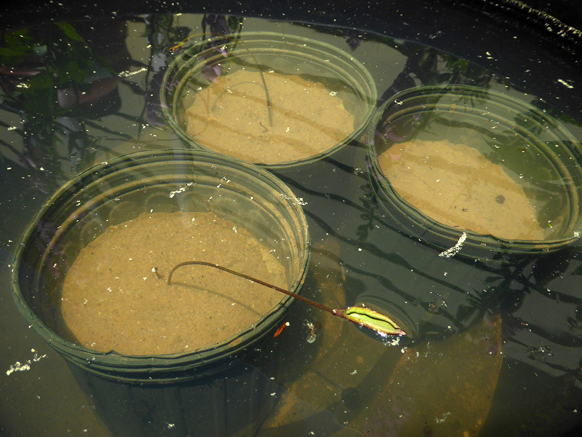 where the lotus barrel is now, behind the garage, it takes about 11:30am before it gets any sun, and lasts until 4:30pm or so. is it getting enough sunshine? none of that will matter since we're planning on relocating it to a spot between raised beds 2 and 3, directly facing south where it can get the maximum amount of daylight. the coin leaves are still closed, but the lotus with the longer stem was finally beginning to open up its leaf, slowly unfurling. hopefully by tomorrow it will be completely open.