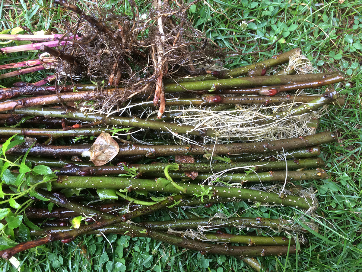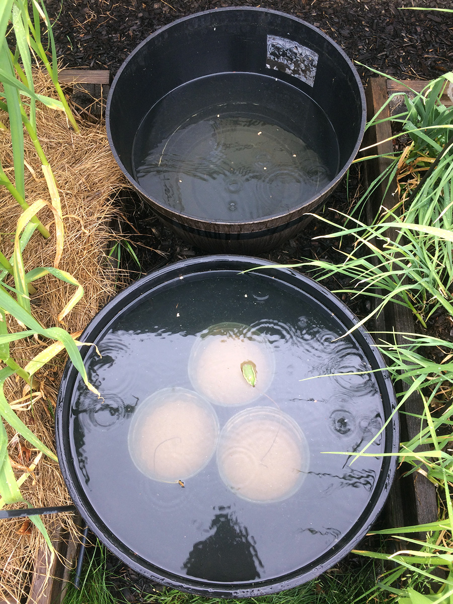 it rained for much of the day, everything from sprinkles to showers, but no heavy downpours. the first thing i did was to go out back and check on the status of my lotuses. unfortunately - with the overcast weather - the partially opened coin leaf from yesterday still remained partially opened. whenever there was a lull in the precipitation, i'd go outside and do some garden surveying. i particularly wanted to make sure there was no rabbit damage anywhere.