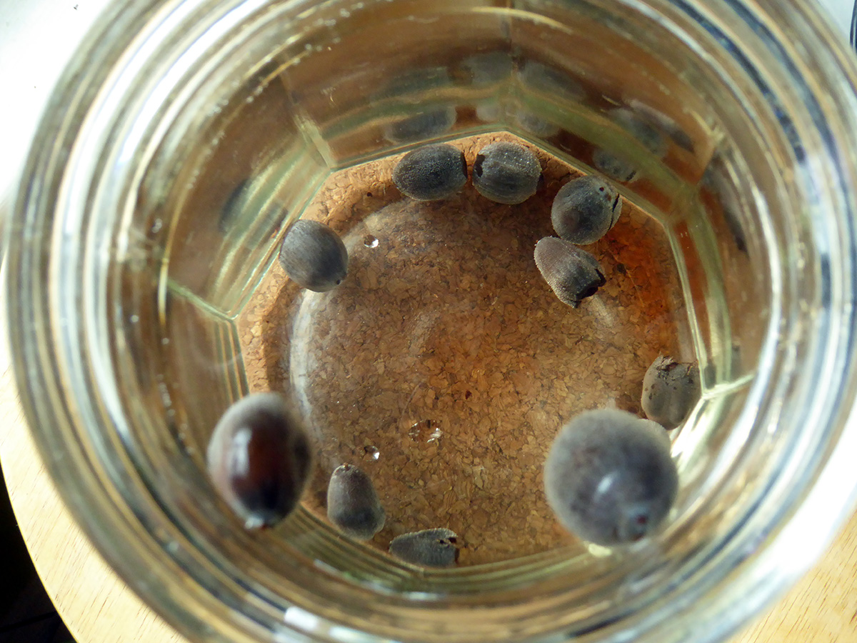 i did the first water change of my new batch of lotus seeds. a little more than 12 hours since i soaked them yesterday evening, the seeds are still surprisingly hard, including the ruptured shells. i was kind of expecting them to feel soft. it makes me wonder if i should've sanded them bit more, but i can't sand them again now, only thing left to do is stay the course, hope for the best. it's still early, my first lotus sprout wasn't until after 2-3 days of soaking. of the 4 floating seeds, 2 of them sank back down to the bottom, so maybe they're still good.