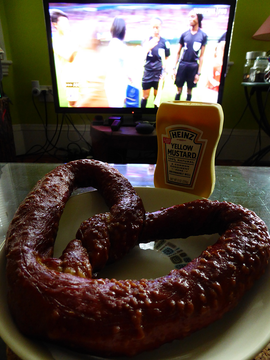 i went to star market around noontime to get some groceries: greek yogurt, frozen raviolis, fruit juice, veggie stix snacks. i returned home and had a strawberry yogurt for lunch. my sister stopped by briefly to drop off some soft pretzels.