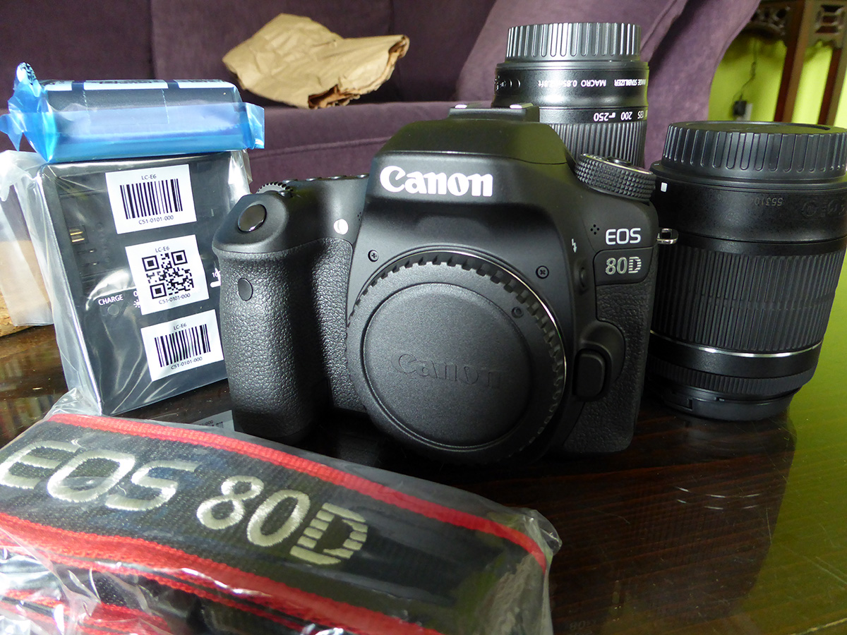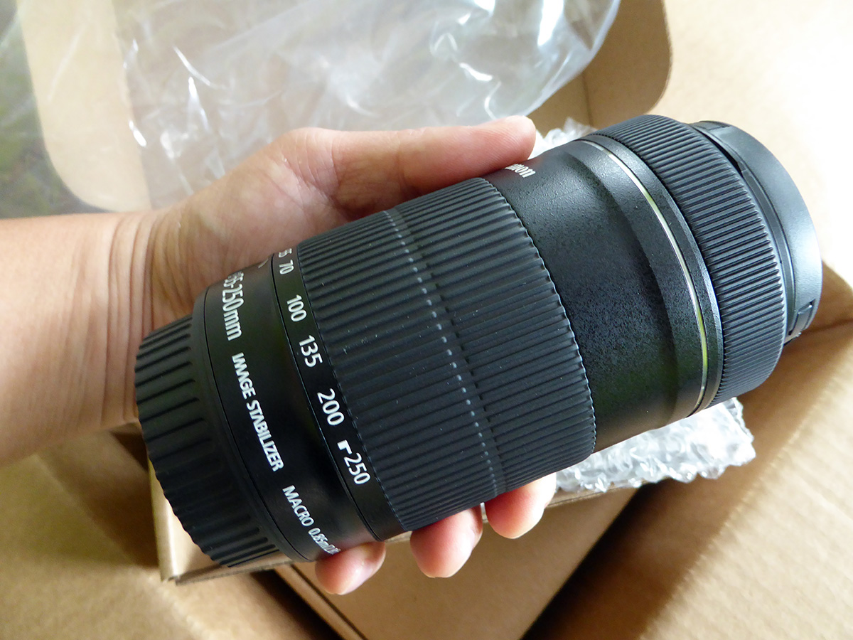 the box was a lot bigger than i'd imagined. for a second i thought maybe they'd shipped my old camera along with the new one, but that wasn't the case. inside were two more boxes, labelled "EOS PowerShot VIXIA" which is all encompassing reference to canon's DLSR-P&S-videography divisions. i was worried they sent the wrong items, but sticker labels on the boxes confirmed that one was the telephoto lens while the other contained the 80D camera body and kit lens. i opened the telephoto lens first. i was surprised by how light and skinny it was. it felt sort of cheap because of the all-plastic body but it looked nice, and later i'd find out how it performed.