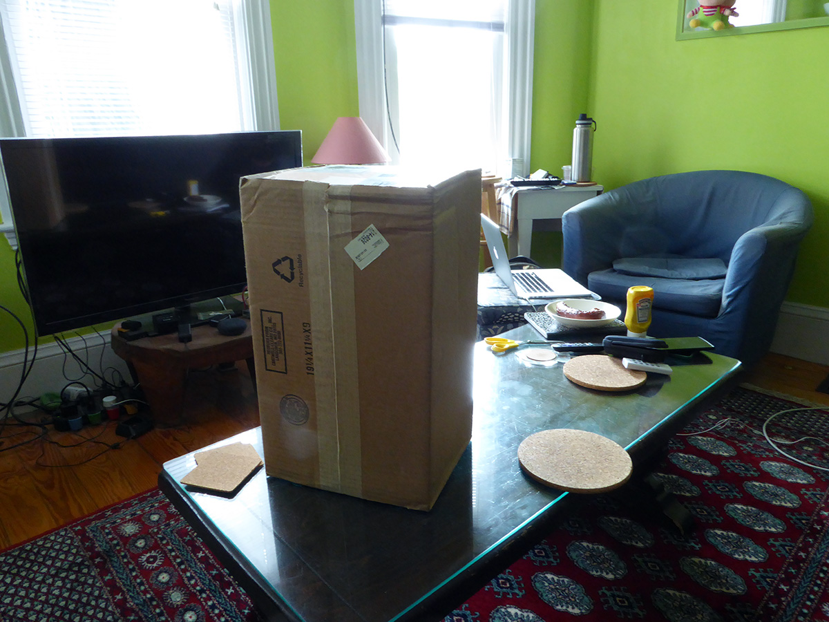 around 10am i saw a UPS van drive by my house, making a delivery to a neighbor down the street. looks like i used the wrong carrier, should've gone brown! 11:45am a fedex vehicle came rolling down my street. excitedly i left my station to receive the package, but the van then turned a corner and disappeared. false alarm. 1pm another UPS van came down my street making deliveries. i pretty much stopped caring about the package by that point, and was instead shooting a video out the window, when it finally arrived at 1:45pm. i'd heard the thumping sound of a nearby car speaker but ignored it. then i heard a gentle knocking on my door before i saw someone tapping on my window and noticed the fedex truck parked outside.