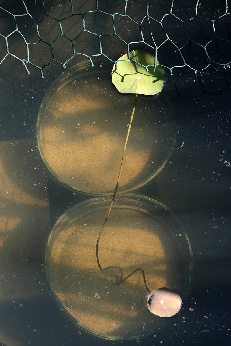 when i checked on the lotus around 5pm, the 2nd coin leaf had completely unfurled by that point. it was still red which made me a little nervous, but everything else seems to be going according to plan. the 1st coin leaf has an obscenely long stem, a result of me waiting too long before planting it. underwater the stem of the 3rd coin leaf is starting to come on. according to prophecy, there will be 4 coin leaves before the aerial leaves start forming.
